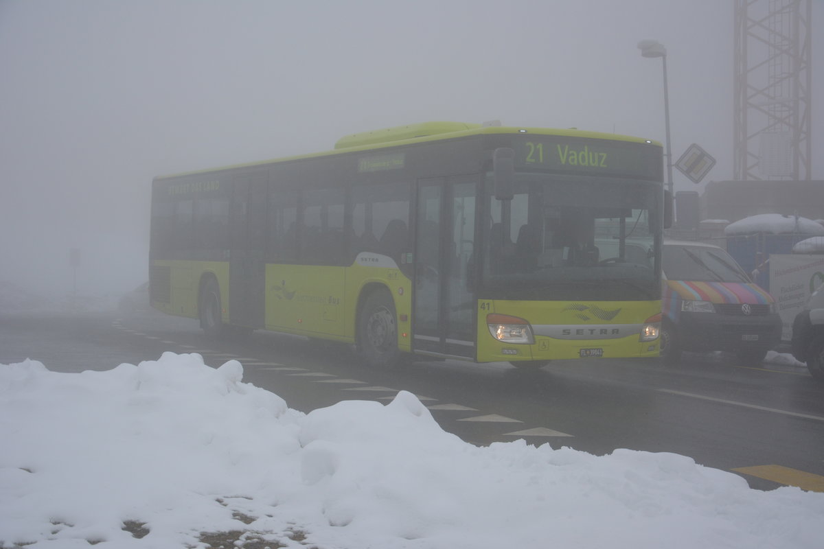 FL-39841 fährt am 16.10.2015 auf der Linie 21 nach Vaduz. Aufgenommen wurde ein Setra S 415 NF / Malbunstrasse Liechtenstein.