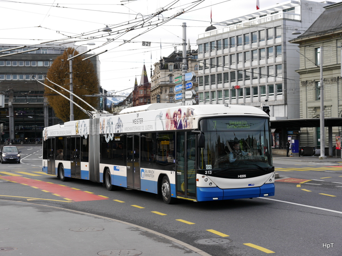 VBL - Trolleybus Nr.213 unterwegs auf der Linie 7 in Luzern am 28.03.2016