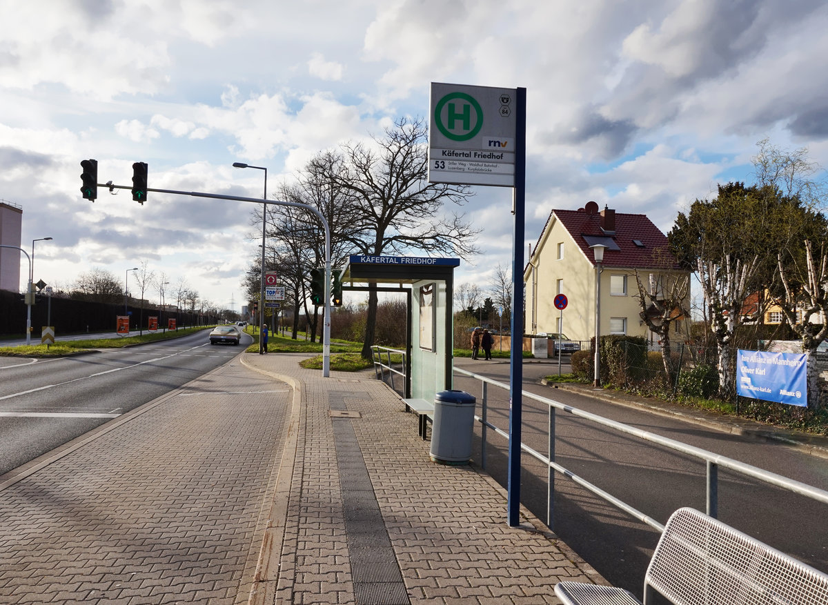 Blick auf die Haltestelle Käfertal Friedhof am 27.3.2016.