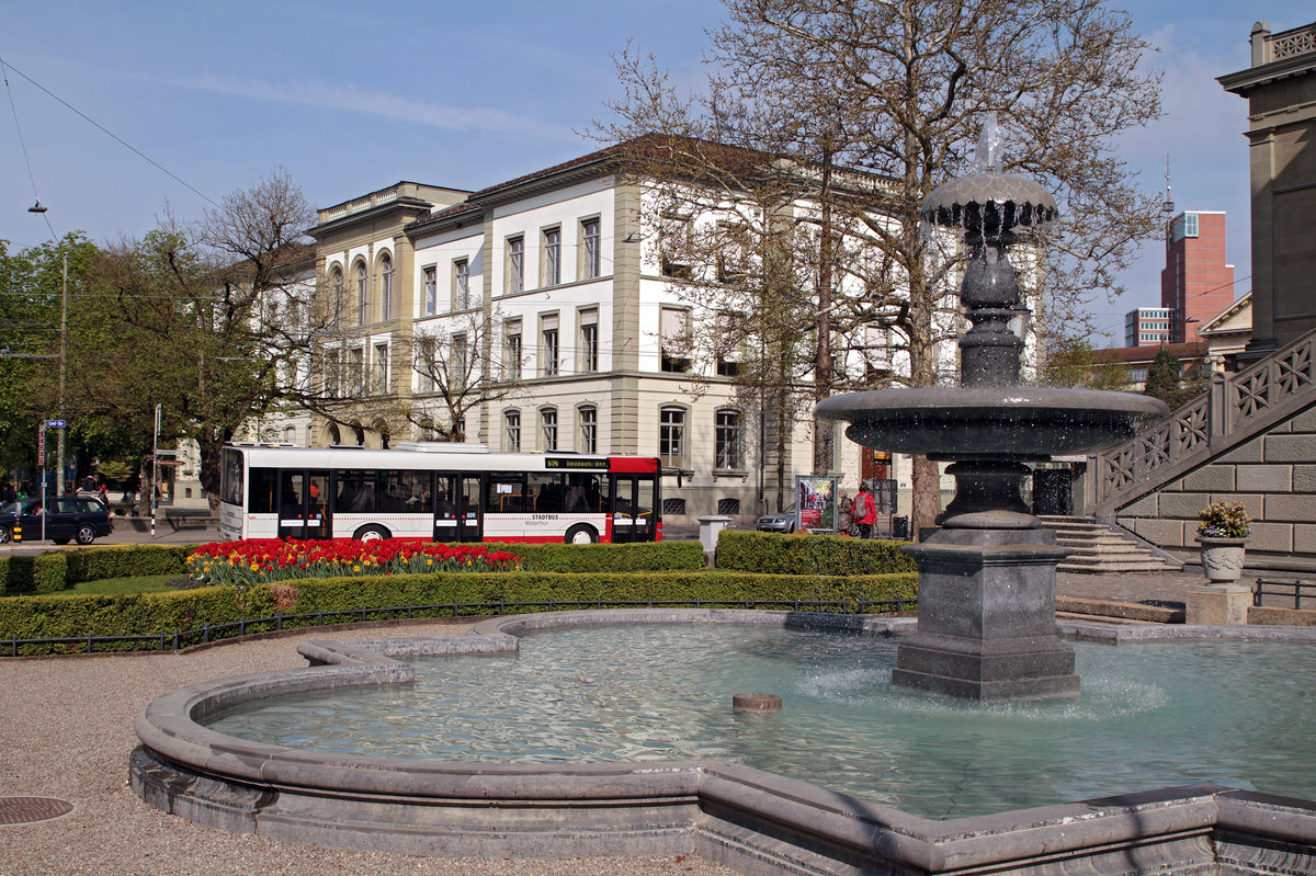 Für einmal den Bus aus dem Fokus gerückt: Ein Solaris Urbino 12 von Stadtbus Winterthur am 22. April 2016 bei der Haltestelle Stadthaus.