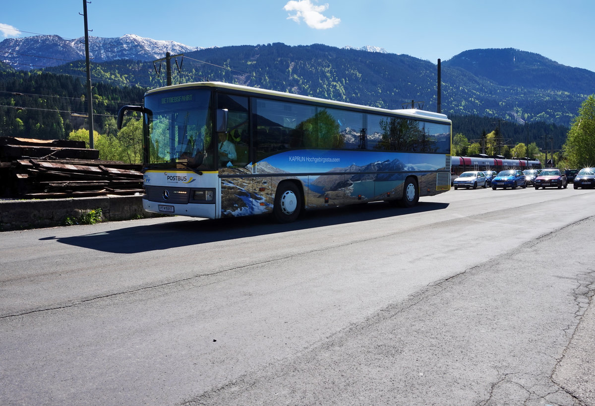 Hier zu sehen ist ein 290er Gräf & Stift von HPV, unterwegs auf der Kfl. 5002 (Lienz Bahnhof - Winklern im Mölltal Busterminal - Heiligenblut Hotel Heiligenblut), am 20.4.2016 bei der Haltestelle Lienz Bahnhof.