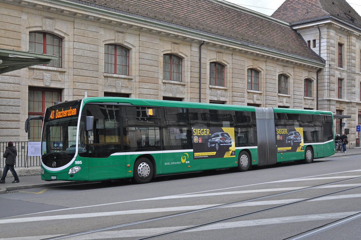 Mercedes Citaro 7005, auf der Linie 48, wartet an der Endstation am Bahnhof SBB. Die Aufnahme stammt vom 12.04.2016.