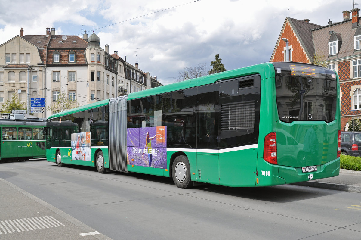 Mercedes Citaro 7018, auf der Linie 38, fährt zur Haltestelle am Wettsteinplatz. Die Aufnahme stammt vom 12.04.2016.