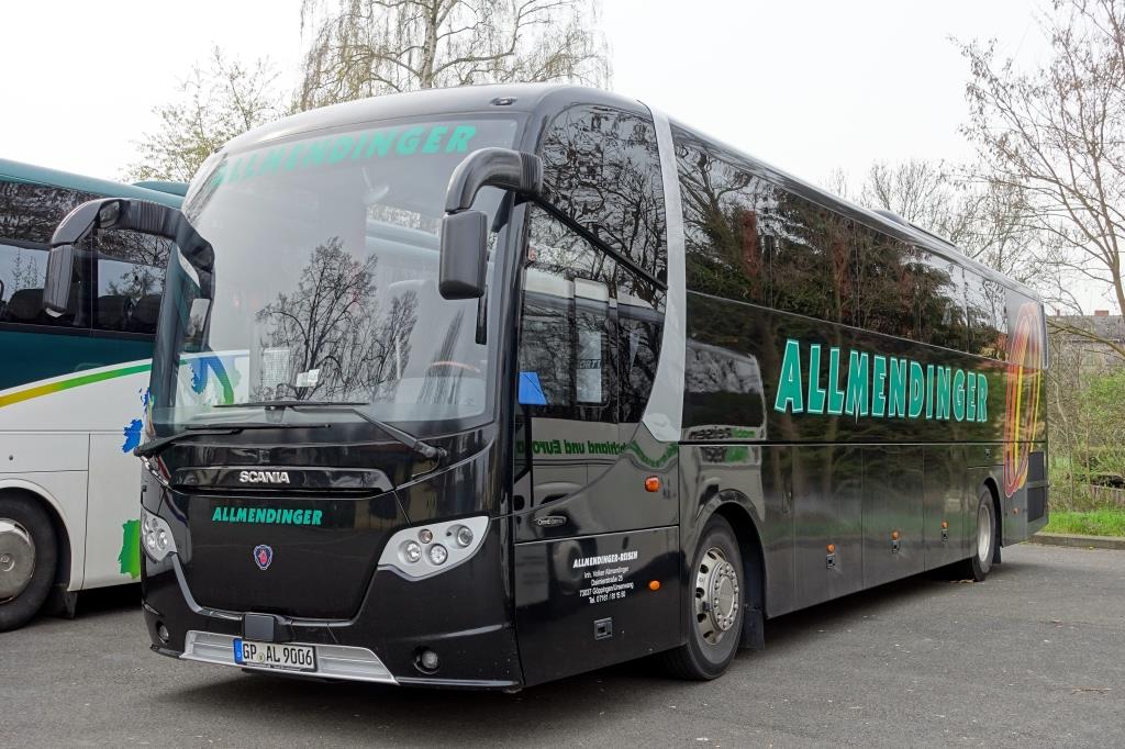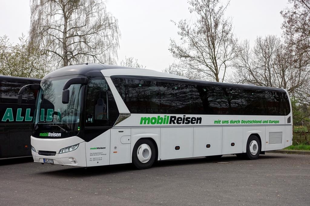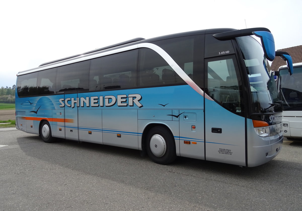 Setra SG 321 UL von Scherer Reisen, eingesetzt im Stadionverkehr vom 1. FSV Mainz 05. Aufgenommen im April 2016 in der Nähe von Mainz.