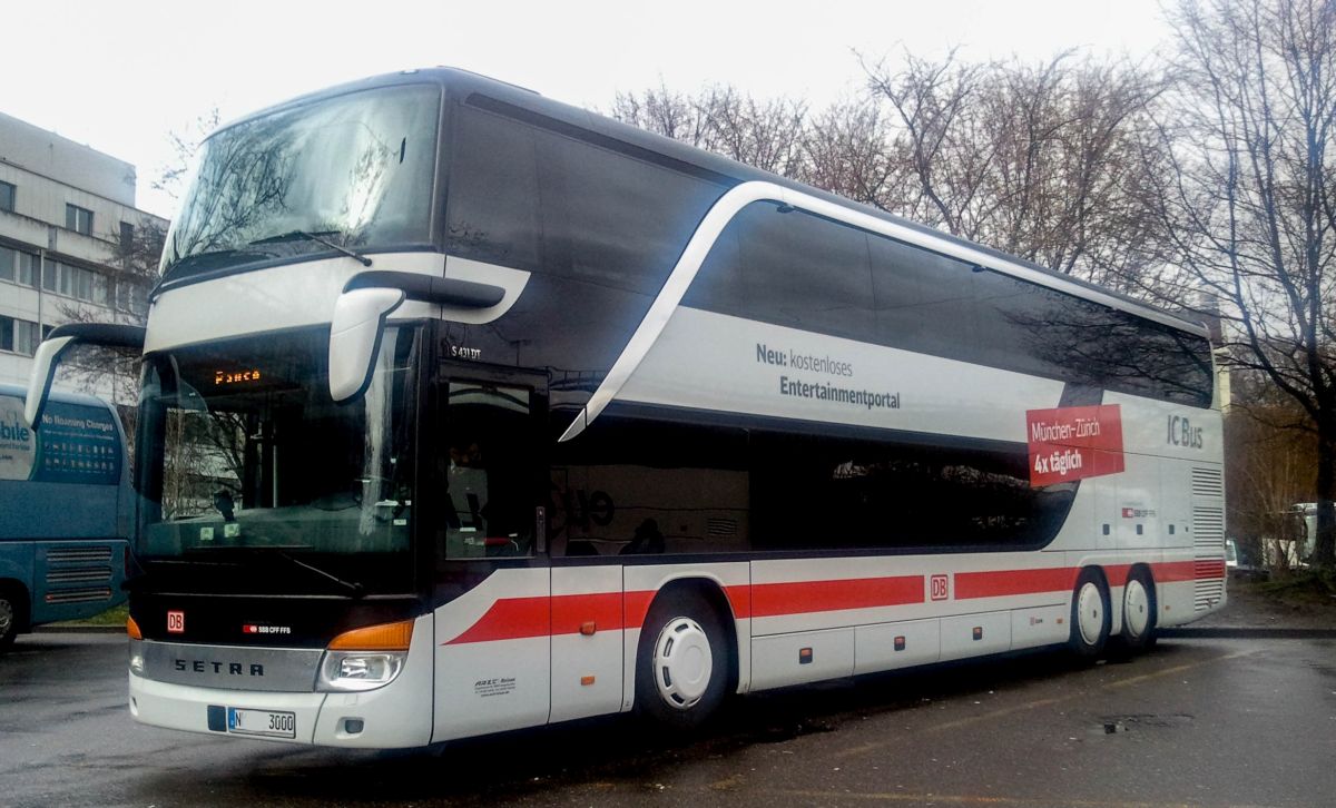 Setra S431 Doppeldecker der Deutschen Bahn, aufgenommen in Zürich am 06.03.2016.