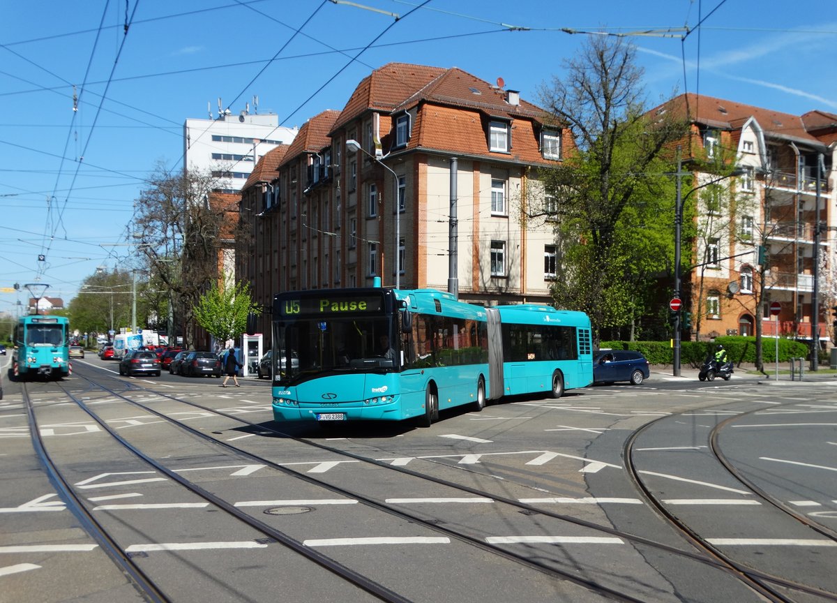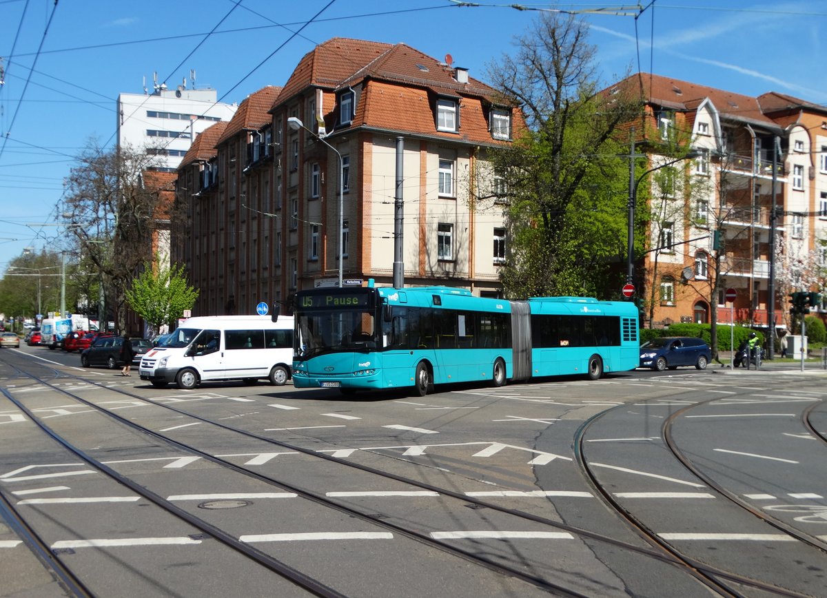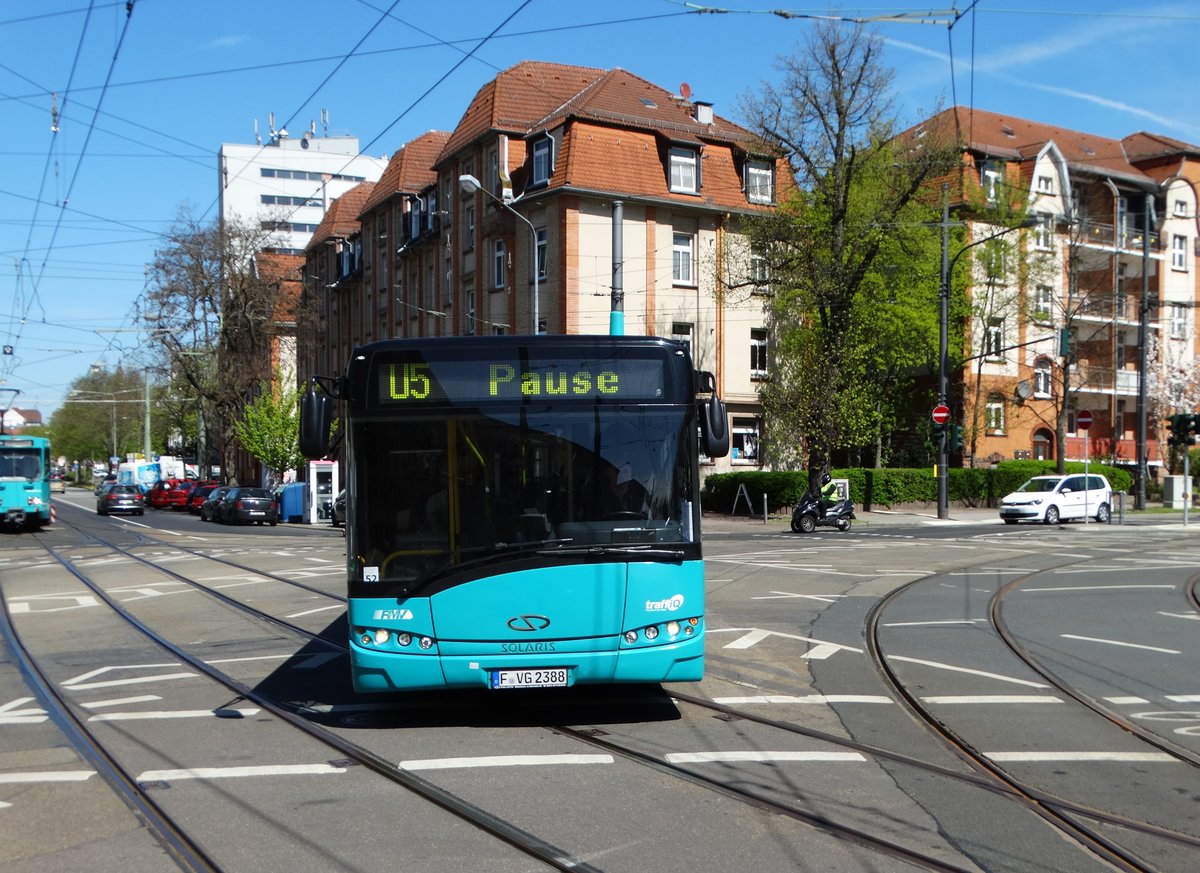 Solaris Urbino 18 am 14.04.16 als U-Bahn Ersatzverkehr (SEV) auf der Linie U5 in Frankfurt am Main