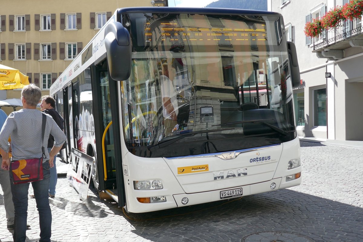 Ab heute 6.8.16 fahren die neuen MAN auf dem Ortsbus Brig-Glis, hier der MAN '10447' "VS 449 119" zum anschauen den ganzen Tag auf dem Stadtplatz stand.