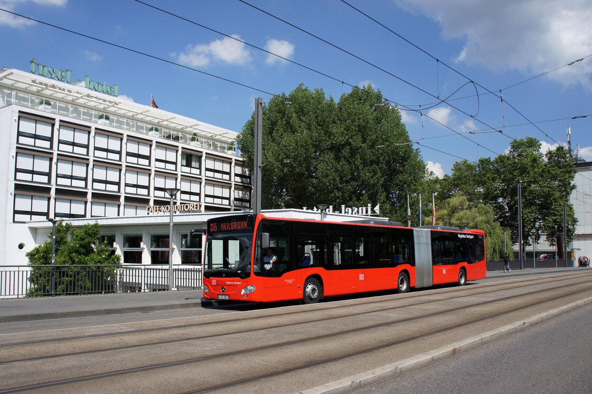 Bus Heilbronn: Mercedes-Benz Citaro C2 Gelenkbus vom Regional Bus Stuttgart GmbH (RBS) / Regiobus Stuttgart, aufgenommen im Juli 2016 im Stadtgebiet von Heilbronn.