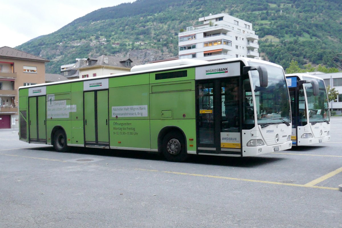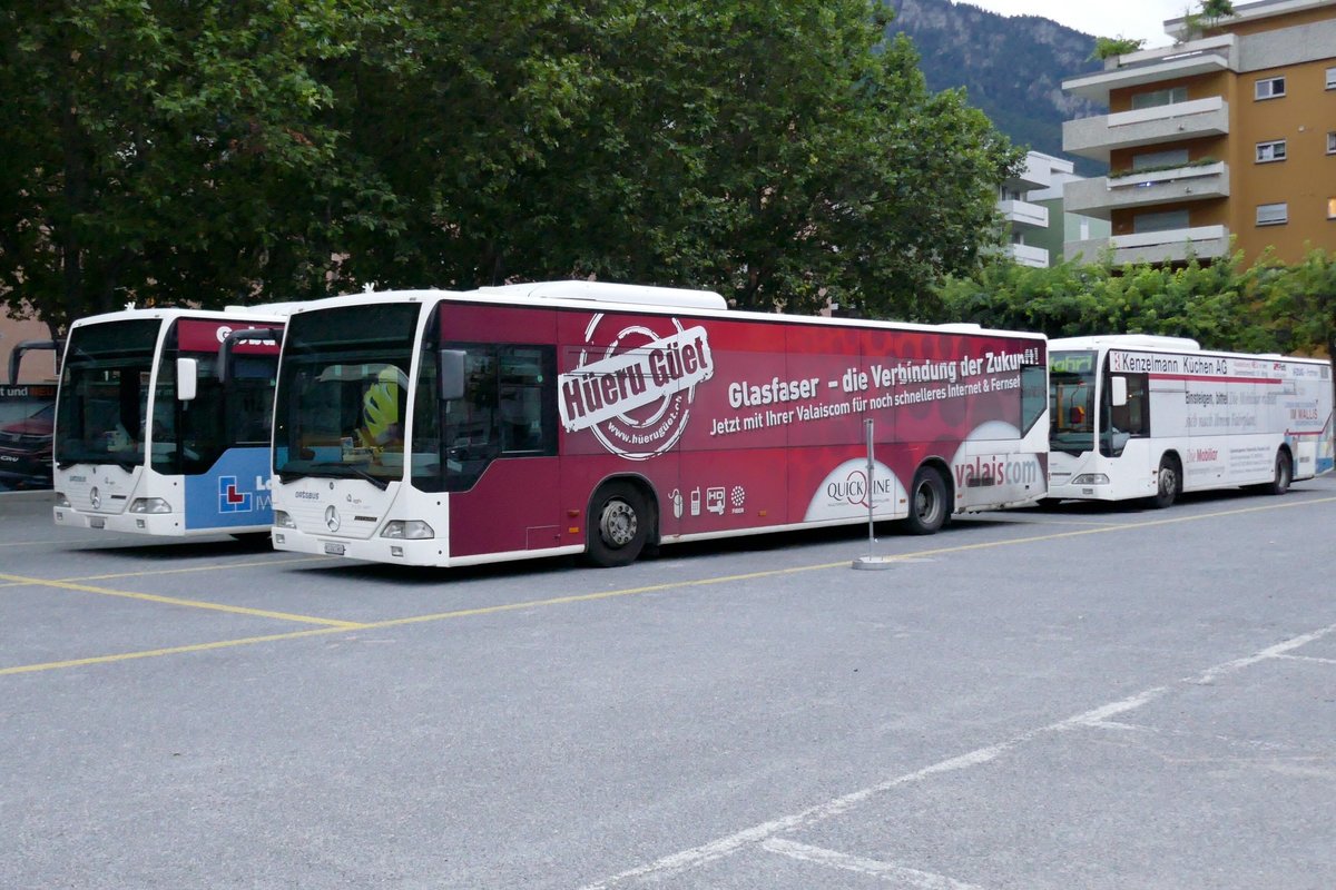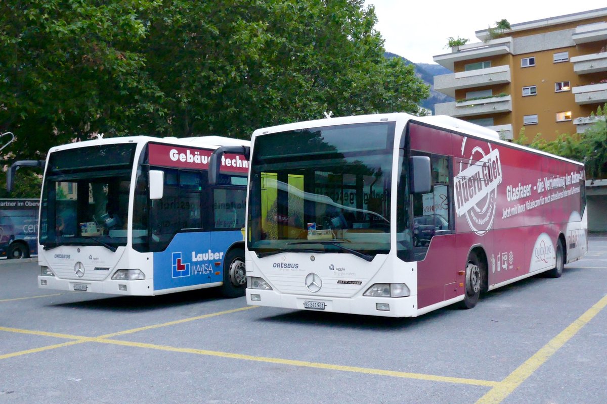 Citaro 960 der von seinem letzten Einsatz zurück kam und der Citaro 961 der schon länger ausser Betrieb war, am 5.8.16 auf dem Zitkusplatz Brig.