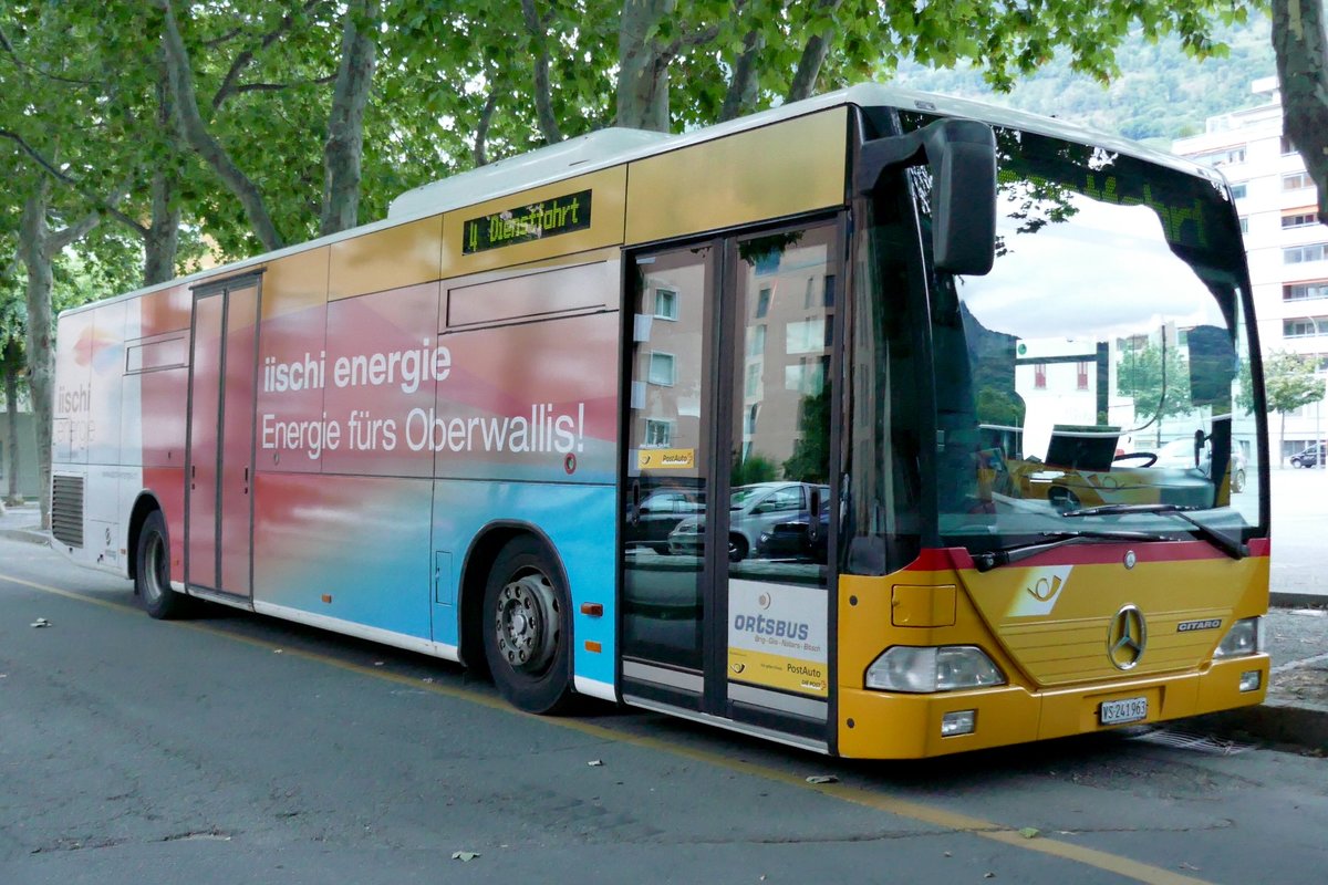 Citaro 963 nach dem letzten Einsatz auf dem Ortsbus Brig-Glis beim Zirkusplatz abgestellt, am 5.8.16.