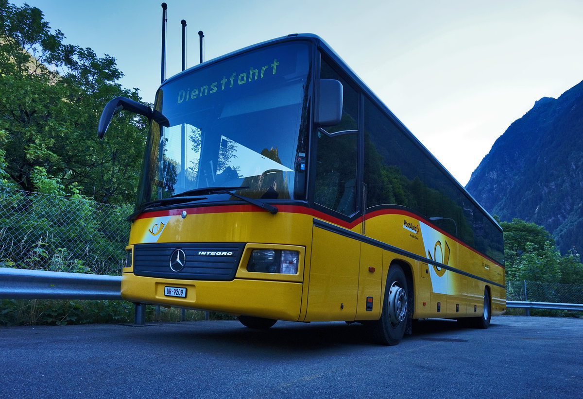 Ein Scania/Hess K320 UB der AAGU, unterwegs auf der Linie 60.401 (AAGU-Linie 1) als Kurs 112 (Flüelen, Gruonbach - Göschenen, Bahnhof).
