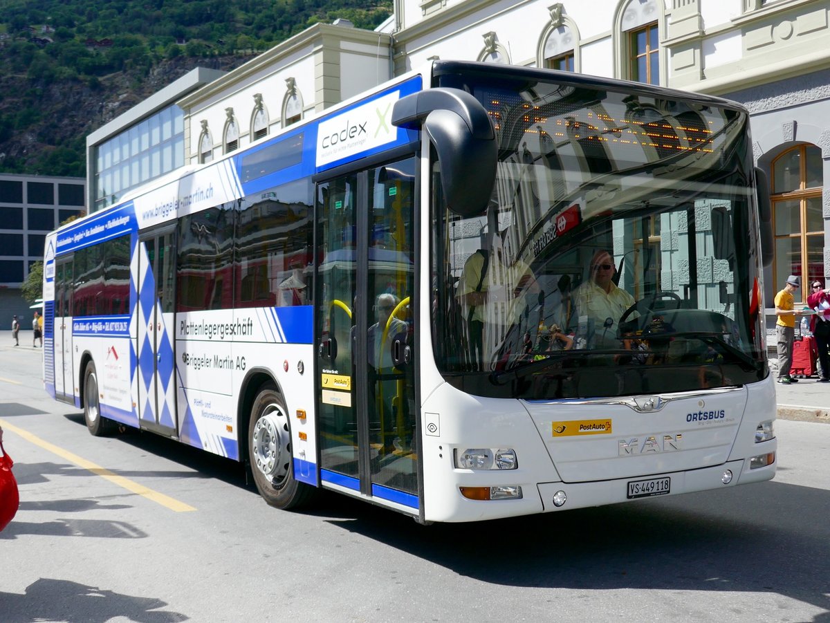 Neuer MAN '10446' "VS 449 118" vom Ortsbus Brig-Glis beim ersten Einsatztag am 6.8.16 auf dem Bhf Brig.