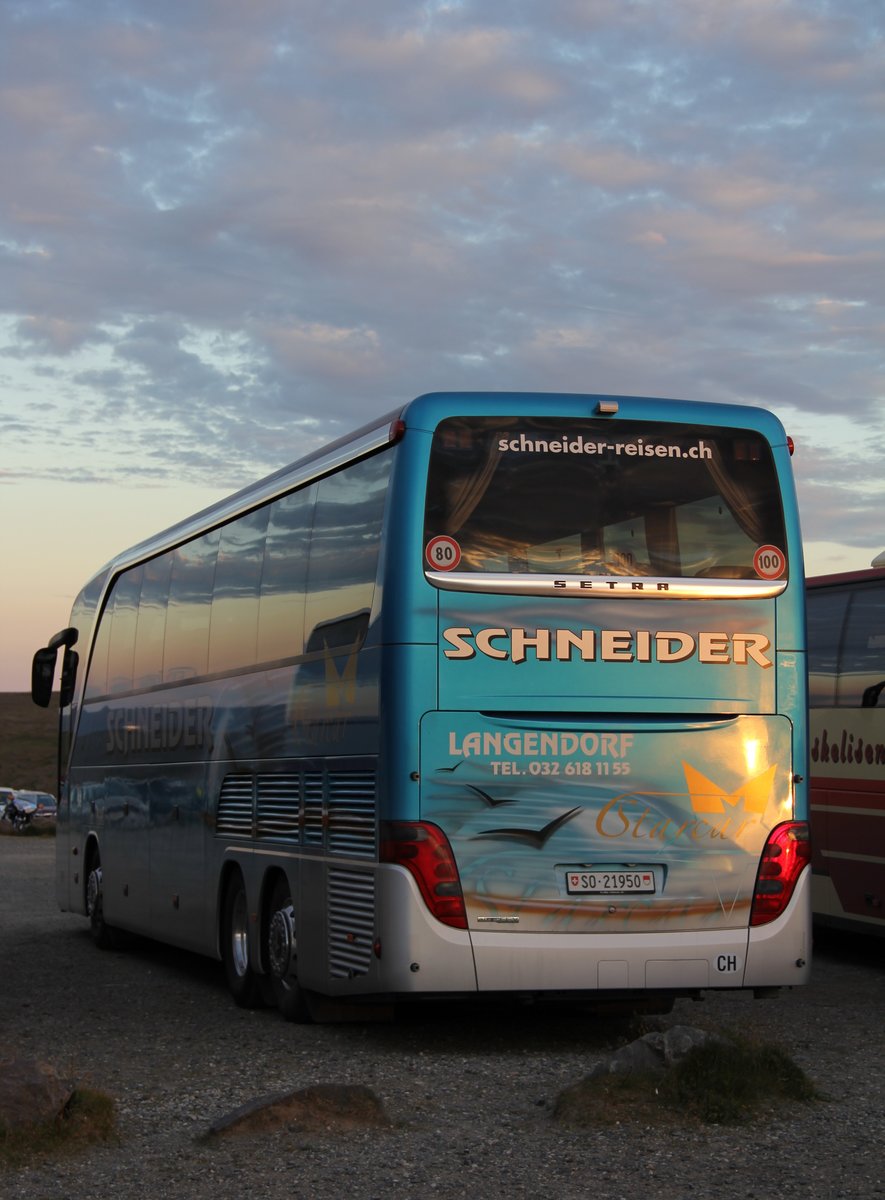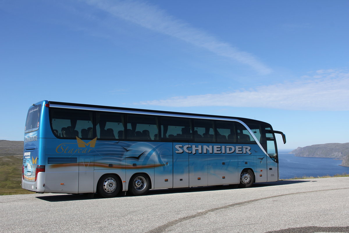 Setra 416 HDH "Starcar" (SO 21950) am Nordkapp, Norwegen, Schneider Reisen und Transport AG, Langendorf, Aufgenommen am 22. Juli 2016.