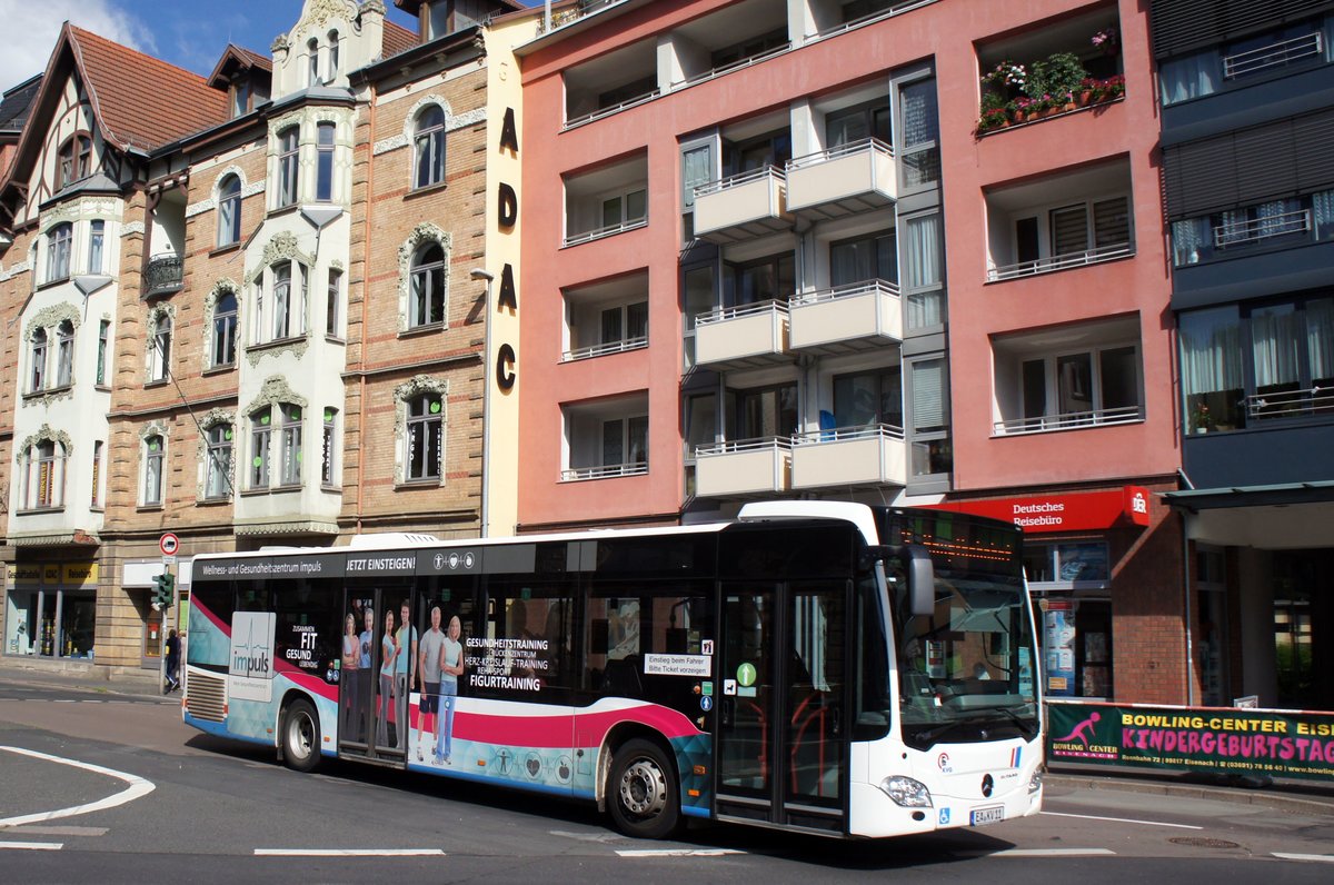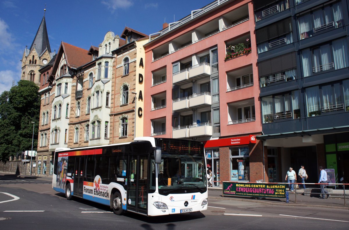 Stadtbus Eisenach: Mercedes-Benz Citaro C2 der KVG Eisenach, eingesetzt im Stadtverkehr. Aufgenommen im August 2016 im Stadtgebiet von Eisenach.