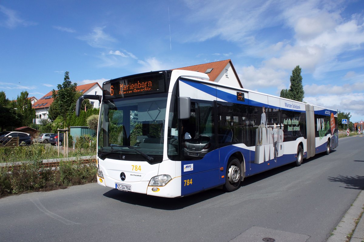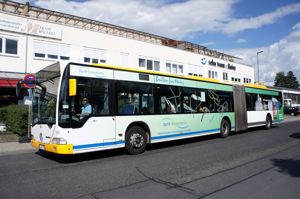 Stadtbus Mainz / Stadtbus Wiesbaden: Mercedes-Benz Citaro G der ESWE Wiesbaden, aufgenommen im August 2016 in Mainz-Bretzenheim.