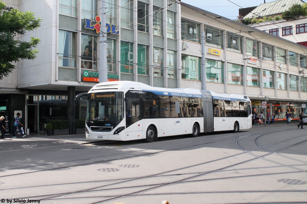 VBZ Nr. 190 (Volvo 7900A Hybrid) am 30.7.2016 beim Sternen Oerlikon. Für die Beschaffung künftiger Autobusse wollte die VBZ auch eine neue Technologie testen. Hierzu wurde ein Volvo 7900A Hybrid zu Testzwecken angemietet.