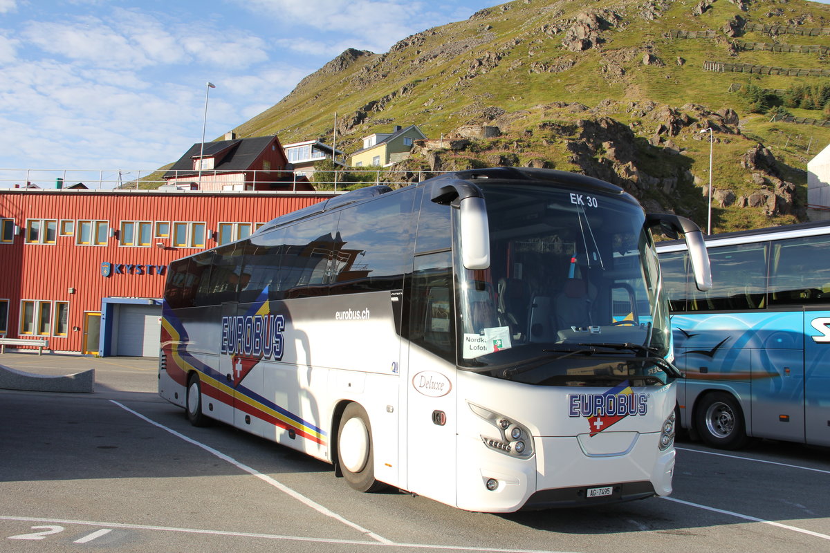 VDL Futura von Eurobus Knecht aus der Schweiz auf dem Busparkplatz in Honningsvag, Norwegen. Aufgenommen am 22. Juli 2016