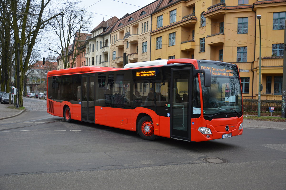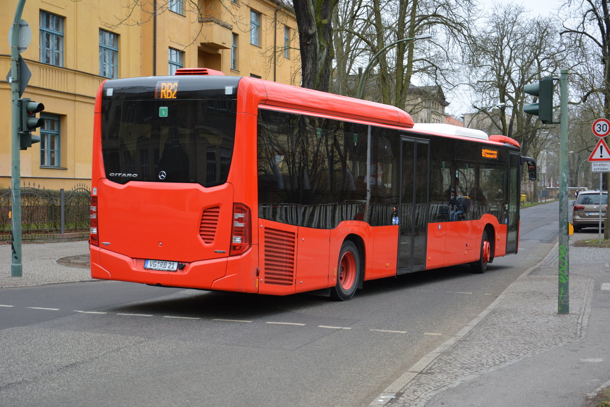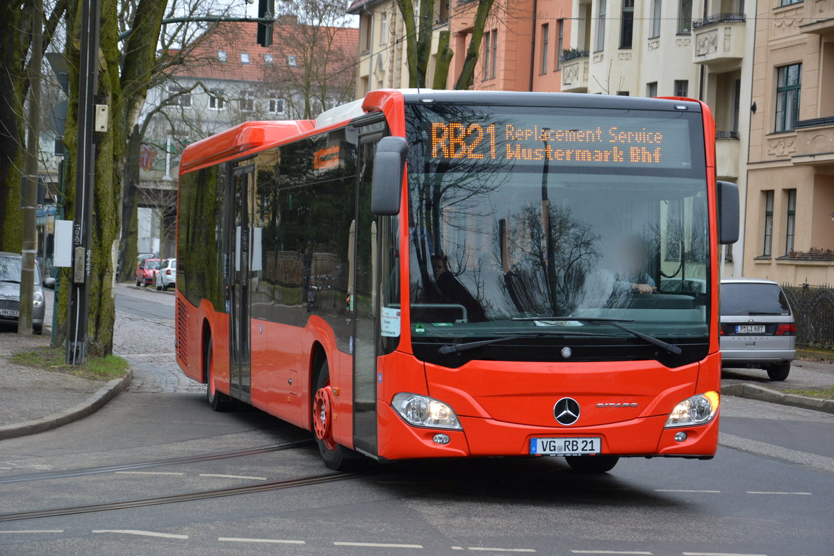 Am 12.03.2016 fährt VG-RB 21 für die DB Regio AG (RB 21) Schienenersatzverkehr zwischen Potsdam Hauptbahnhof und Wustermark. Aufgenommen wurde ein Mercedes Benz Citaro der 2. Generation Ü Low Entry / Potsdam Charlottenhof.