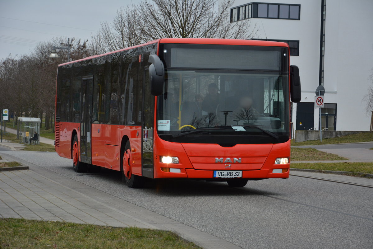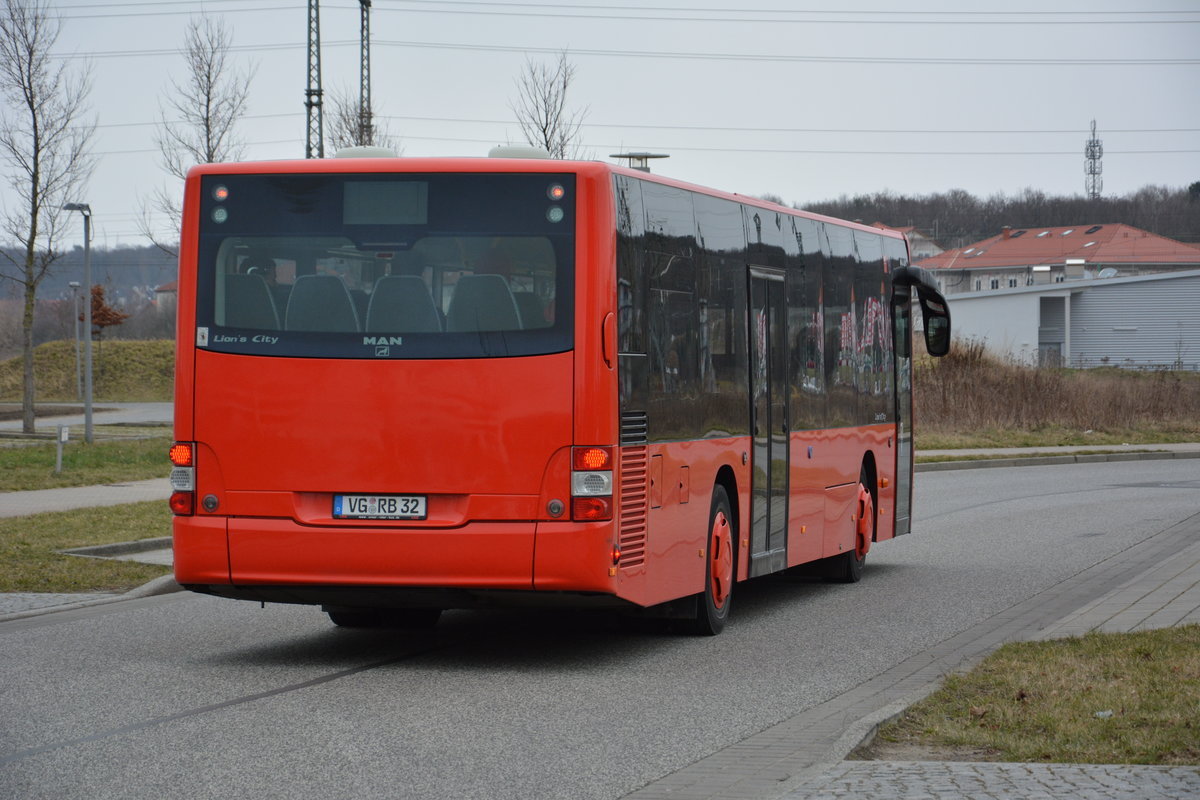 Am 12.03.2016 fährt VG-RB 32 für die DB Regio AG (RB 21) Schienenersatzverkehr zwischen Potsdam Hauptbahnhof und Wustermark. Aufgenommen wurde ein MAN Lion's City Ü / Potsdam, Golm.