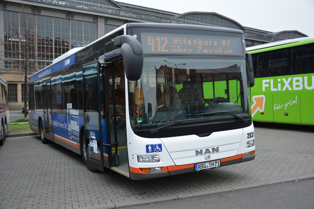 Am 15.04.2016 steht ABG-TH 71 am Busbahnhof Leipzig Hauptbahnhof. Aufgenommen wurde ein MAN Lion's City Ü.