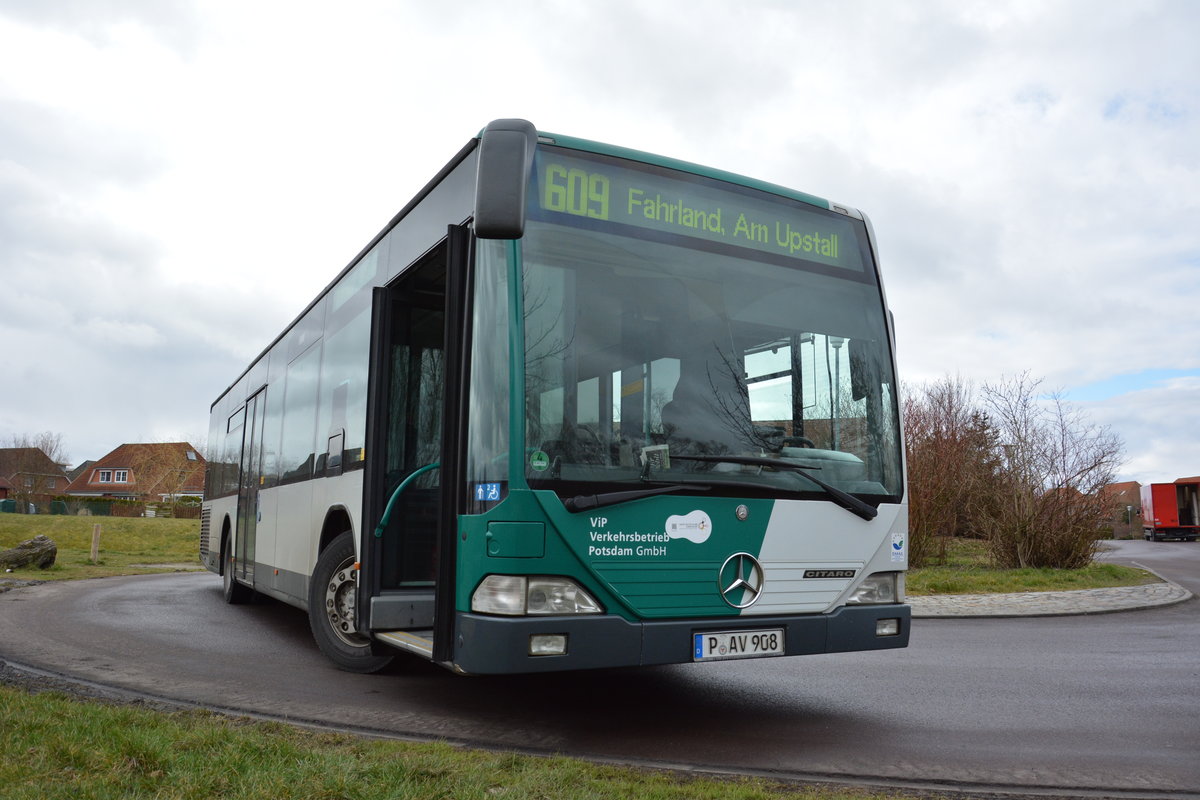 Am 21.03.2016 steht P-AV 908 in Potsdam Fahrland, Am Upstall. Aufgenommen wurde ein Mercedes Benz Citaro.
