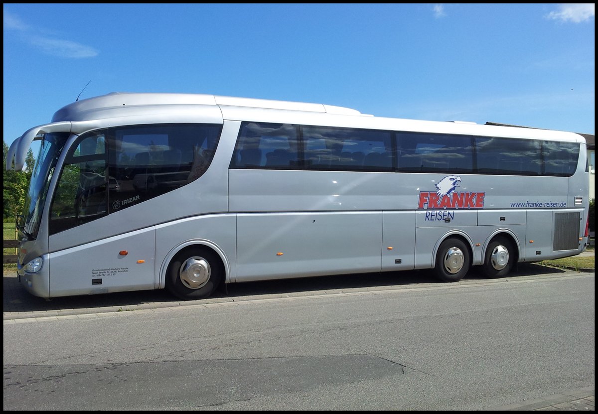 Scania Irizar von Franke-Reisen aus Deutschland im Gewerbegebiet Sassnitz am 28.06.2014