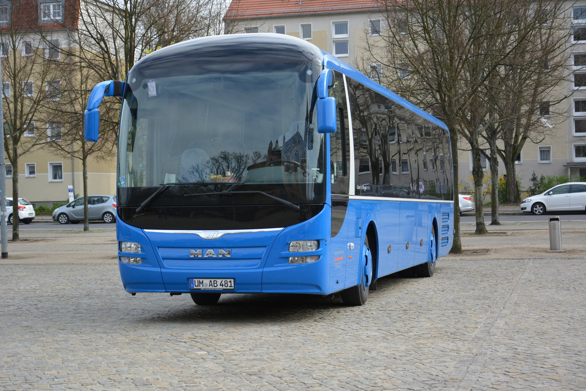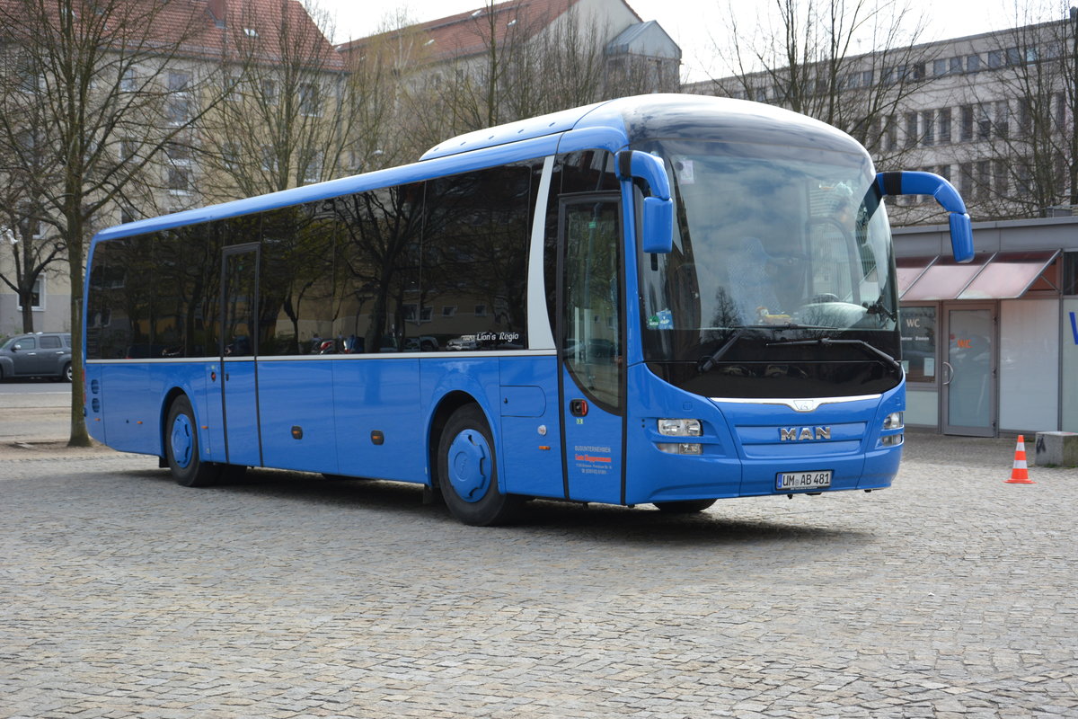 UM-AB 481 steht am 12.04.2016 auf dem Bassinplatz in Potsdam. Aufgenommen wurde ein MAN Lion's Regio (Busunternehmen, Lutz Koppermann).