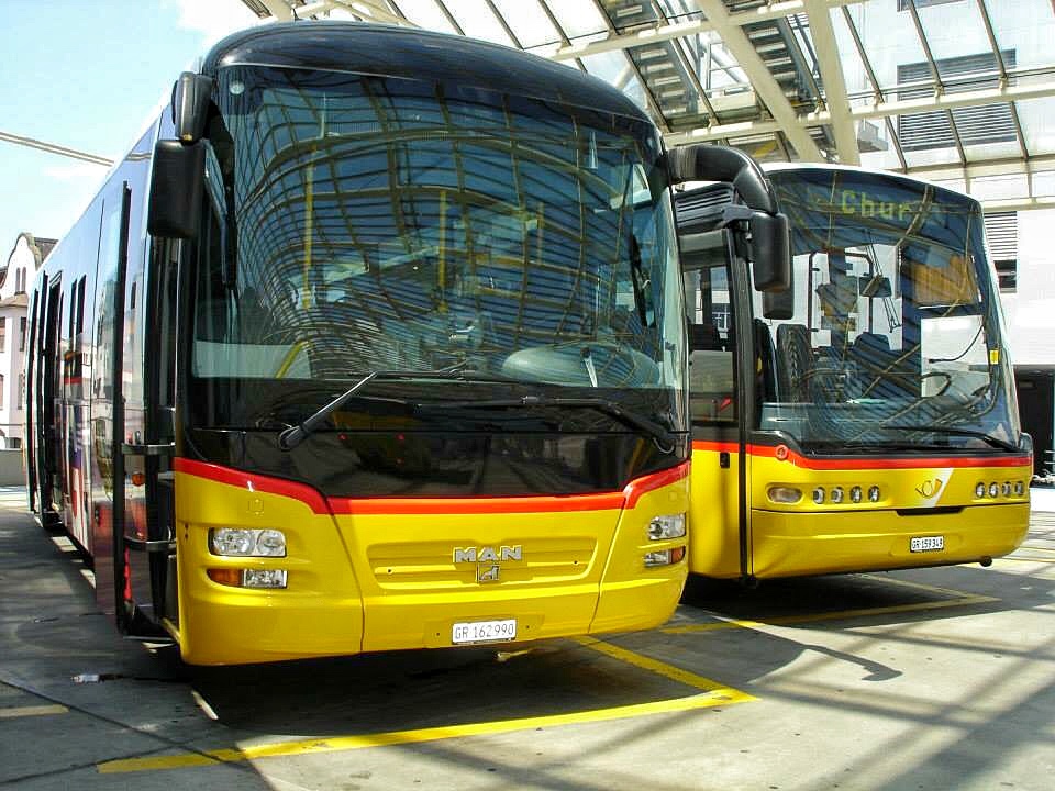 2 MAN und 1 Neoplan waren am 7.7.13 auf dem Postdeck Chur parkiert.