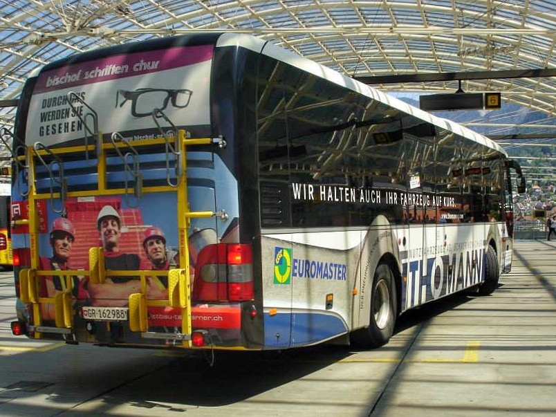 Lion's Regio mit Werbung fürs Bündner Generalabo am 22.6.13 auf dem Postdeck Chur.