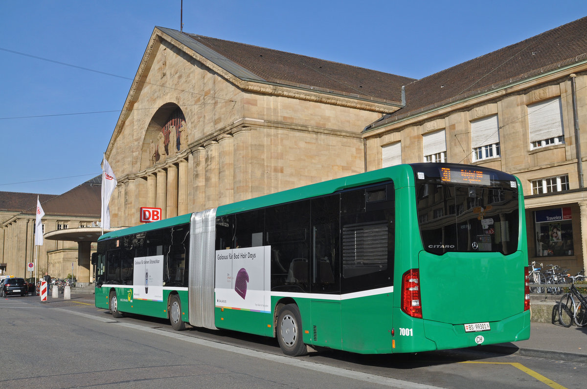 Mercedes Citaro 7001, auf der Linie 30, wartet an der Endhaltestelle am Badischen Bahnhof. Die Aufnahme stammt vom 06.12.2016.