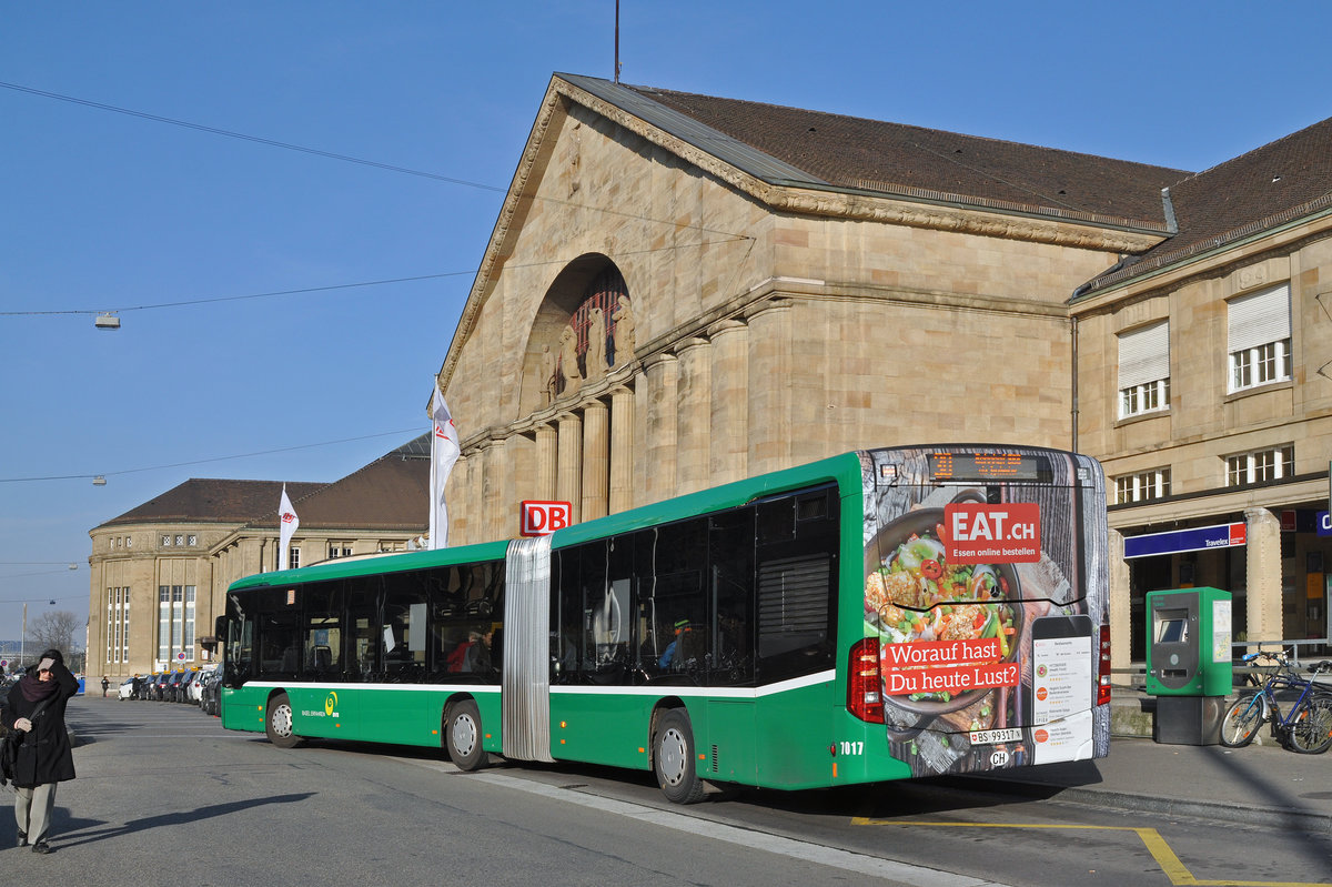 Mercedes Citaro 7017, auf der Linie 30, verlässt die Endhaltestelle am Badischen Bahnhof. Die Aufnahme stammt vom 06.12.2016.