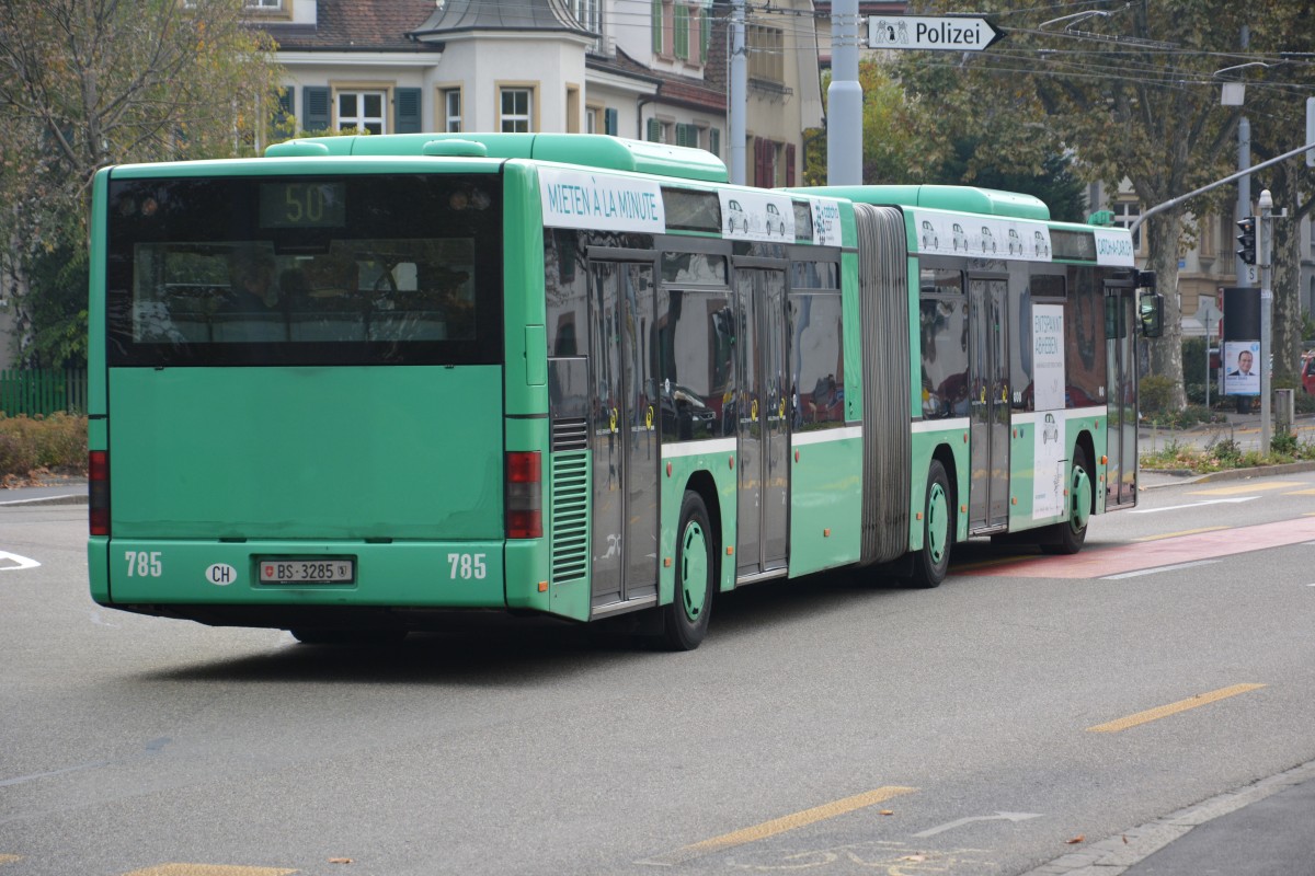 Am 13.10.2015 fährt BS-3285 auf der Linie 50. Aufgenommen wurde ein MAN Niederflurbus der 2. Generation / Basel, Kannenfeldplatz.