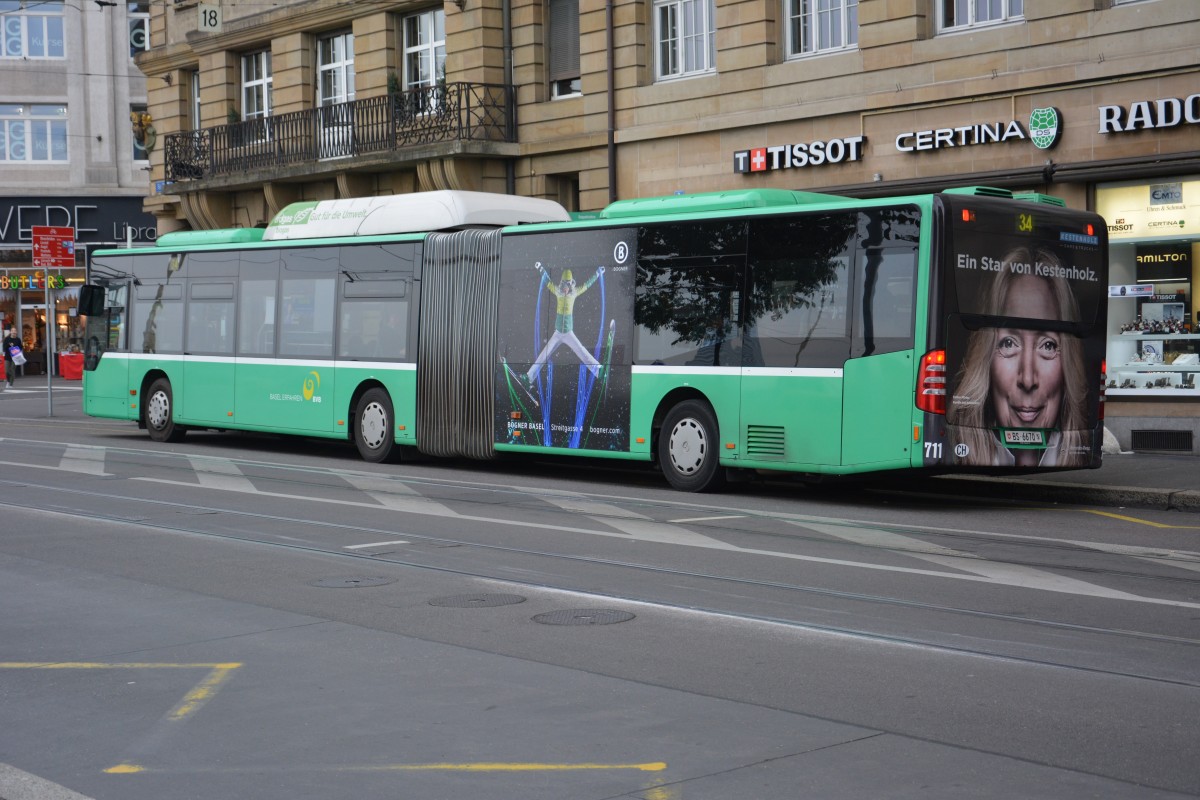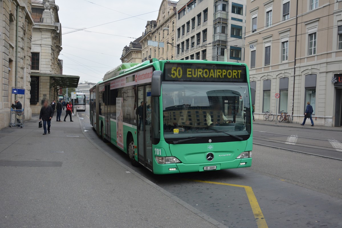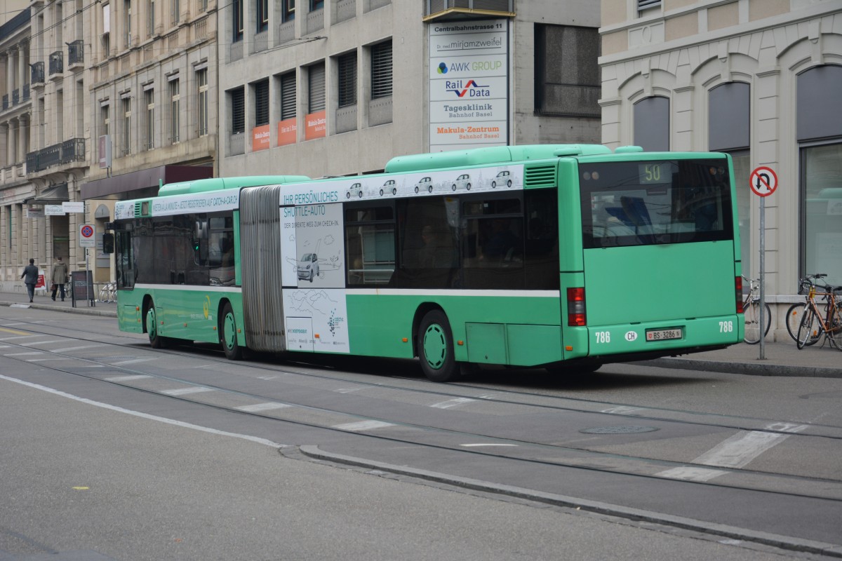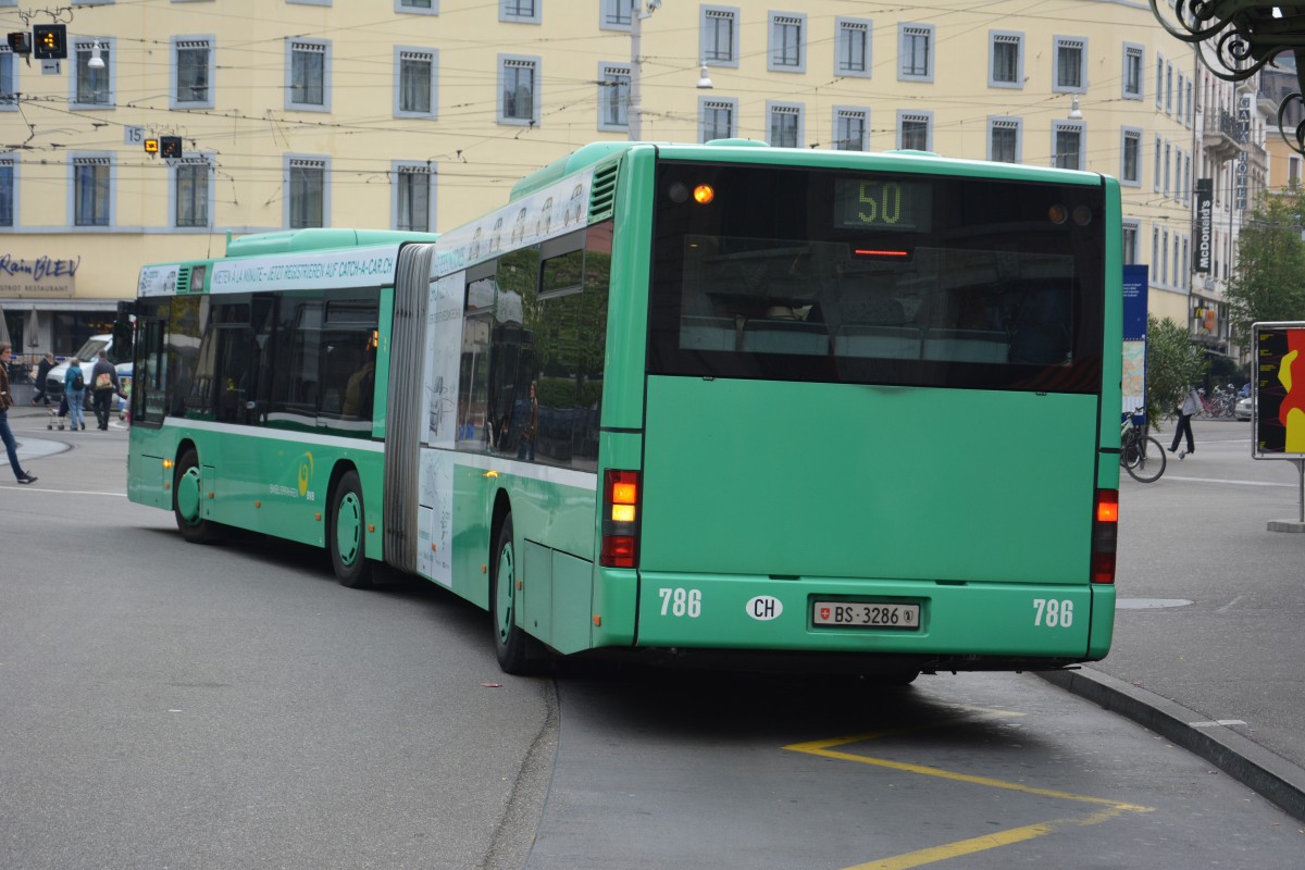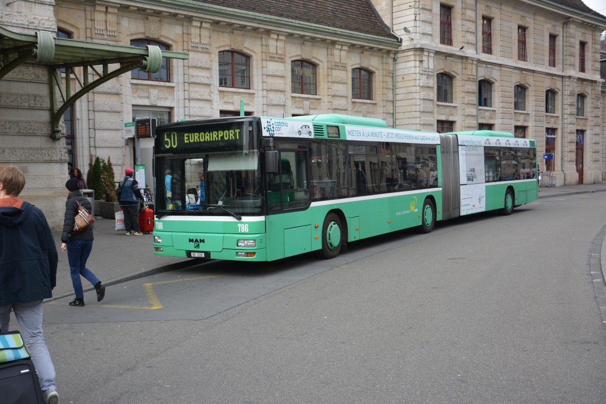 BS-3286 ist am 13.10.2015 eingesetzt auf der Linie 50 zum EuroAiport. Aufgenommen wurde ein MAN Niederflur-Glenkbus / Bahnhof Basel SBB.