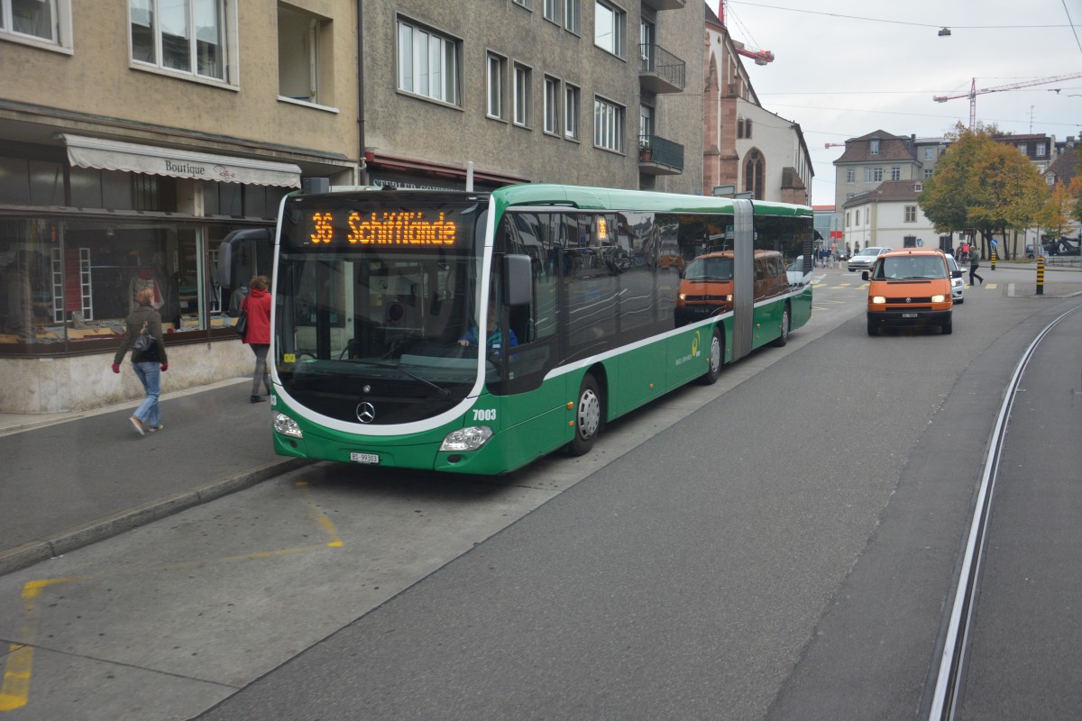Am 13.10.2015 fährt BS-99303 auf der Linie 36. Aufgenommen wurde ein Mercedes Benz Citaro G der 2. Generation / Elsässerstrasse Basel.
