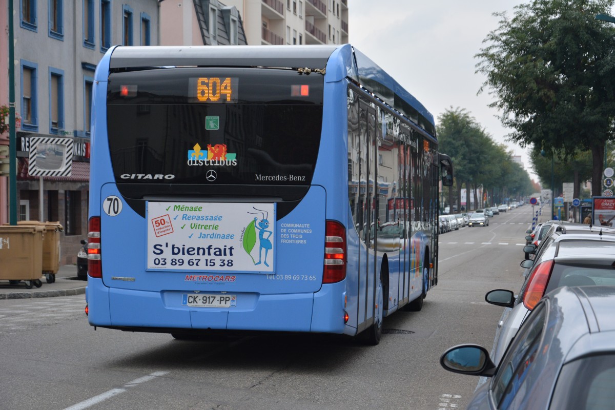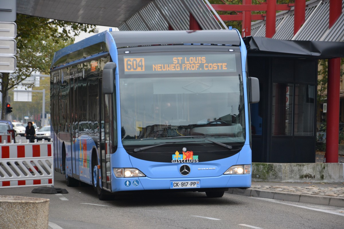 Am 13.10.2015 fährt CK-917-PP auf der Linie 604 nach Saint-Louis. Aufgenommen wurde ein Mercedes Benz Citaro Facelift / Avenue de Bâle in Saint-Louis.