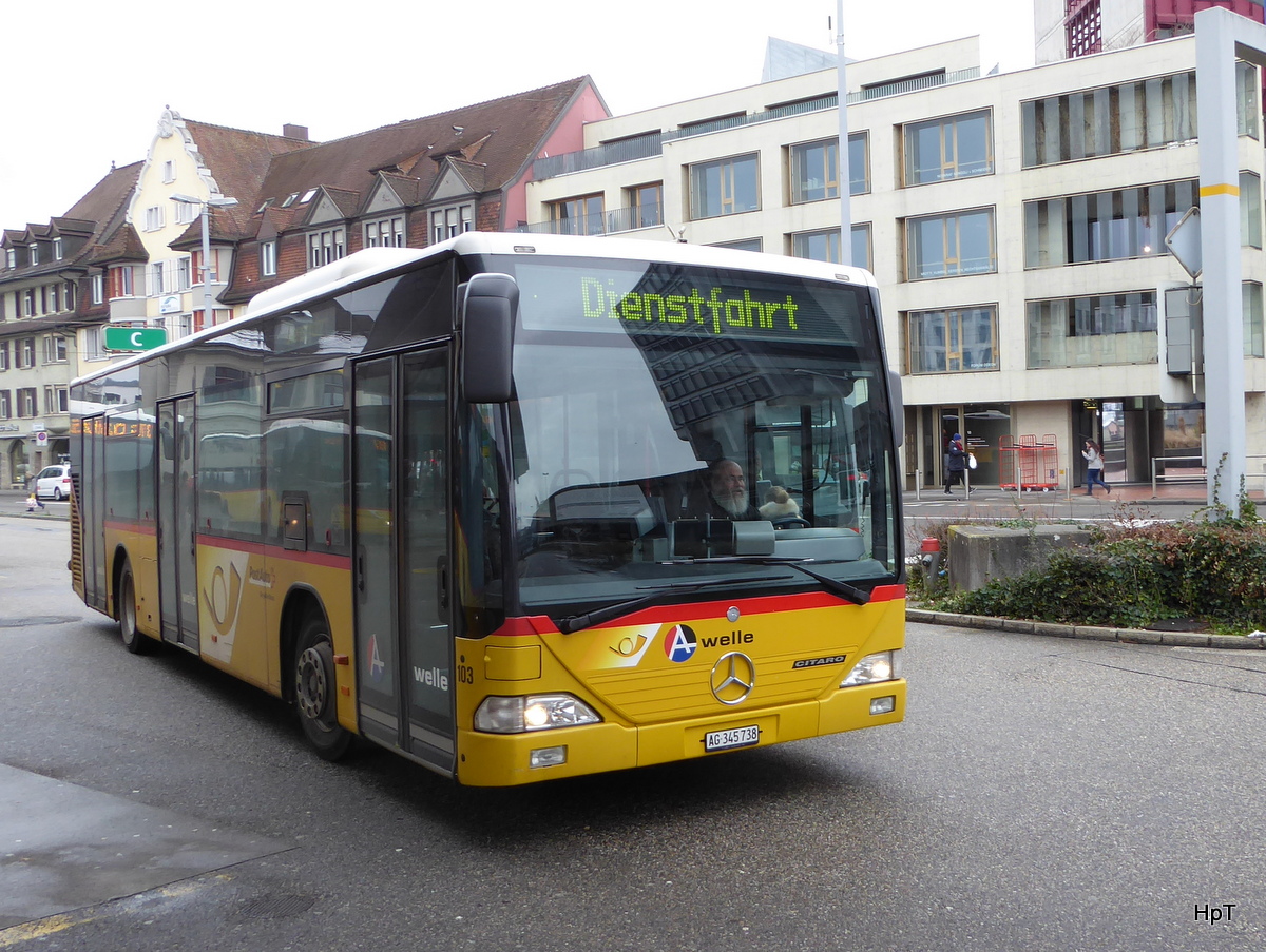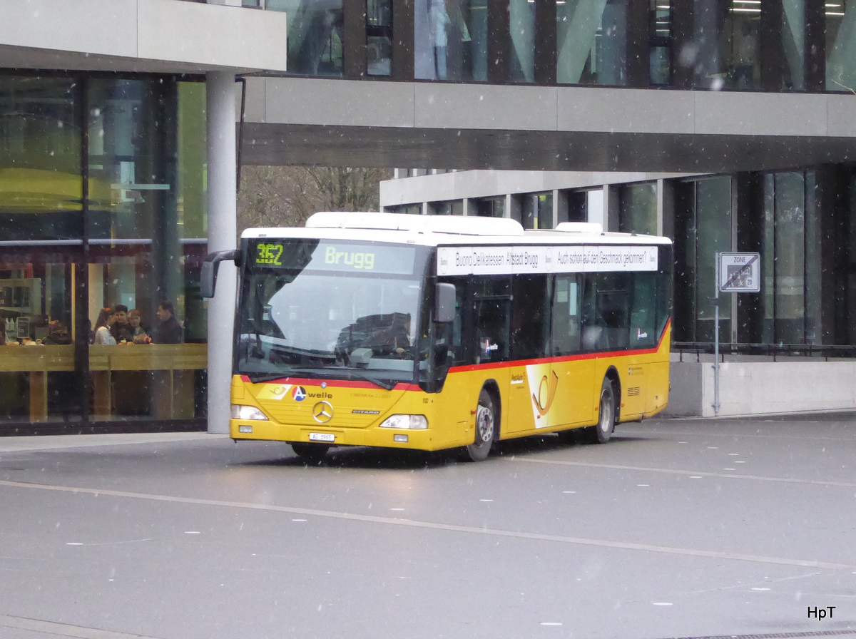Postauto - Mercedes Citaro AG 345738 unterwegs auf Dienstfahrt in Brugg am 16.01.2016