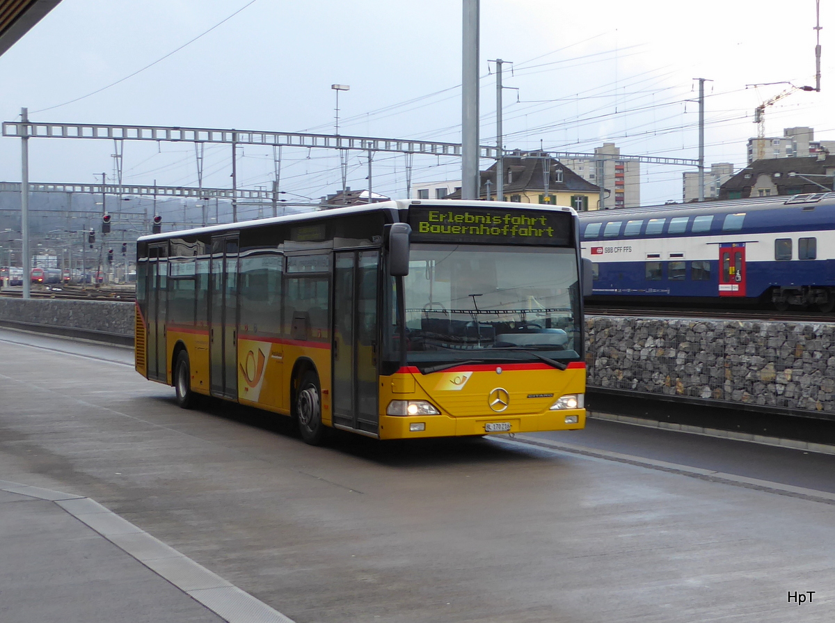 Postauto - Mercedes Citaro BL 170216 unterwegs auf einer Extrafahrt in Brugg am 16.01.2016
