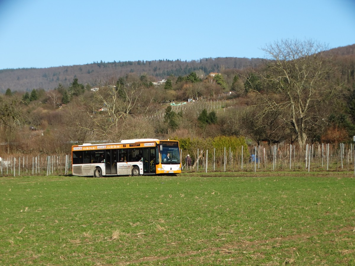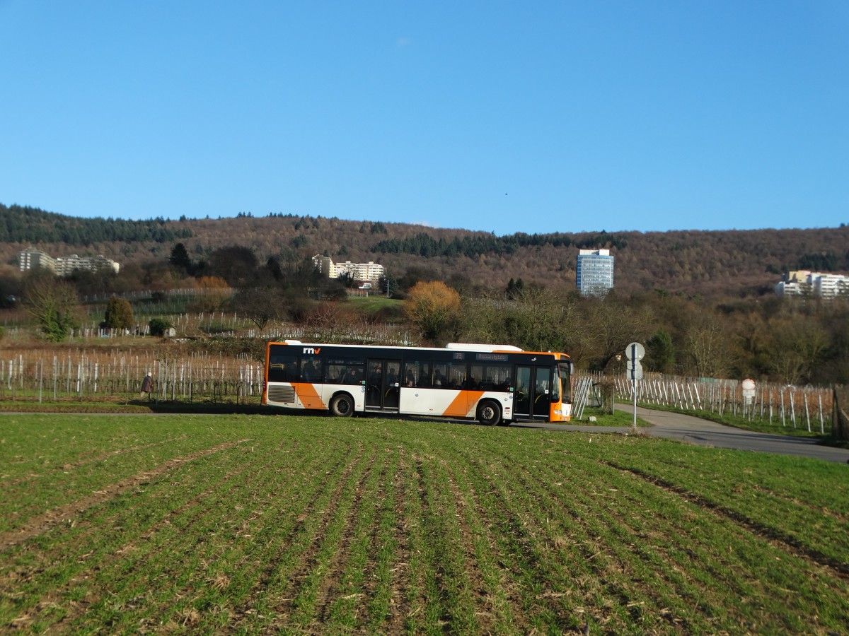 RNV Mercedes Ben Citaro 1 Facelift G 8187 am 29.01.16 in Rohrbach Süd. Die Busse die vom Boxberg und den Emmertsgrund kommen also die Linie 33,39 und 27 fahren kurz vor Rohrbach Süd ung. einen halben Kilometer über diesen Feldweg. Wie ich finde eine schöne Fotostelle