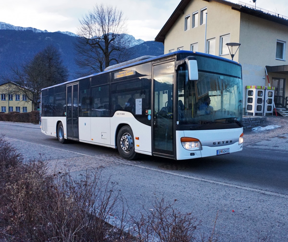 Setra S 415 NF von Siebler Reisen unterwegs auf der Kfl. 5068 als Schibus 23 (Greifenburg Gemeindeamt - Weißensee - Hermagor - Millenium-Express), am 30.1.2016 nahe der Haltestelle Greifenburg Gemeindeamt.