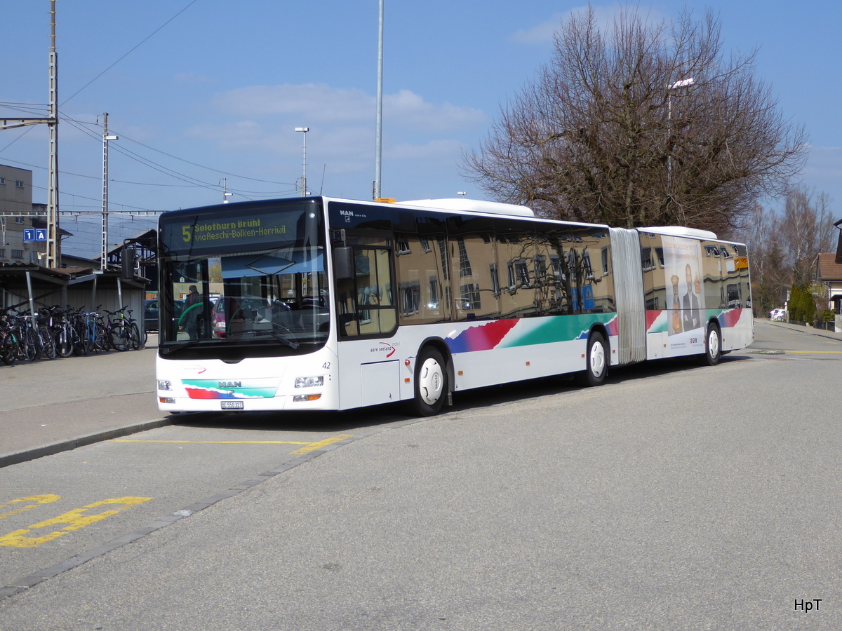 asm Oberaargau - MAN Lion`s City Nr.42 BE 550327 unterwegs auf der asm/BSU Linie 5 in Herzogenbuchsee am 22.03.2016