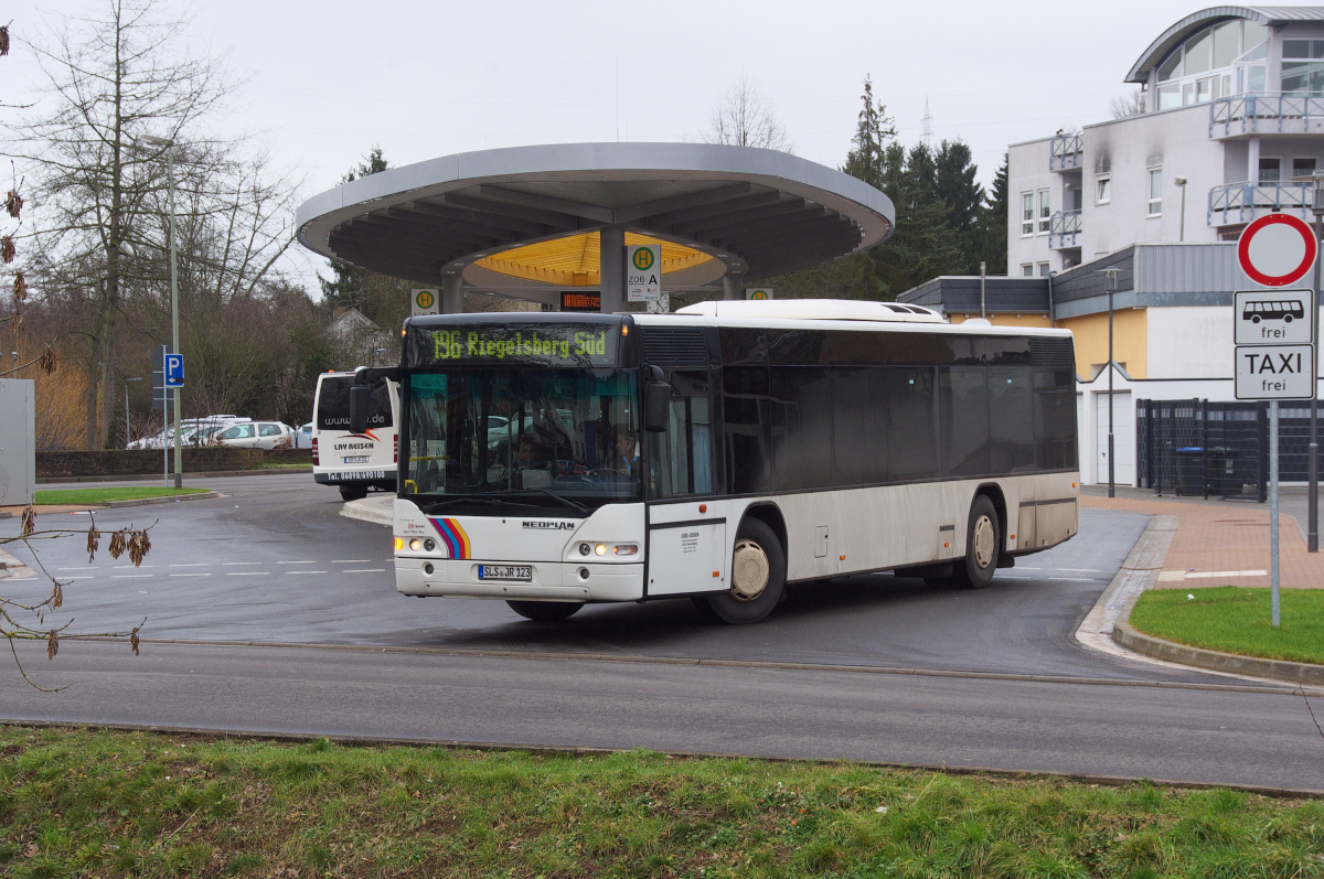 Ein Neoplan Centroliner der Firma Jobs Reisen verlässt als Linie 196 den Busbahnhof von Püttlingen Saar. 02.02.2016