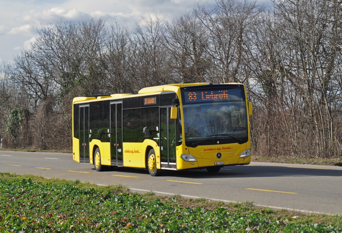 Mercedes Citaro 65 der AAGL hat die Haltestelle Hardwasser verlassen und fährt Richtung Basel. Die Aufnahme stammt vom 11.02.2016.