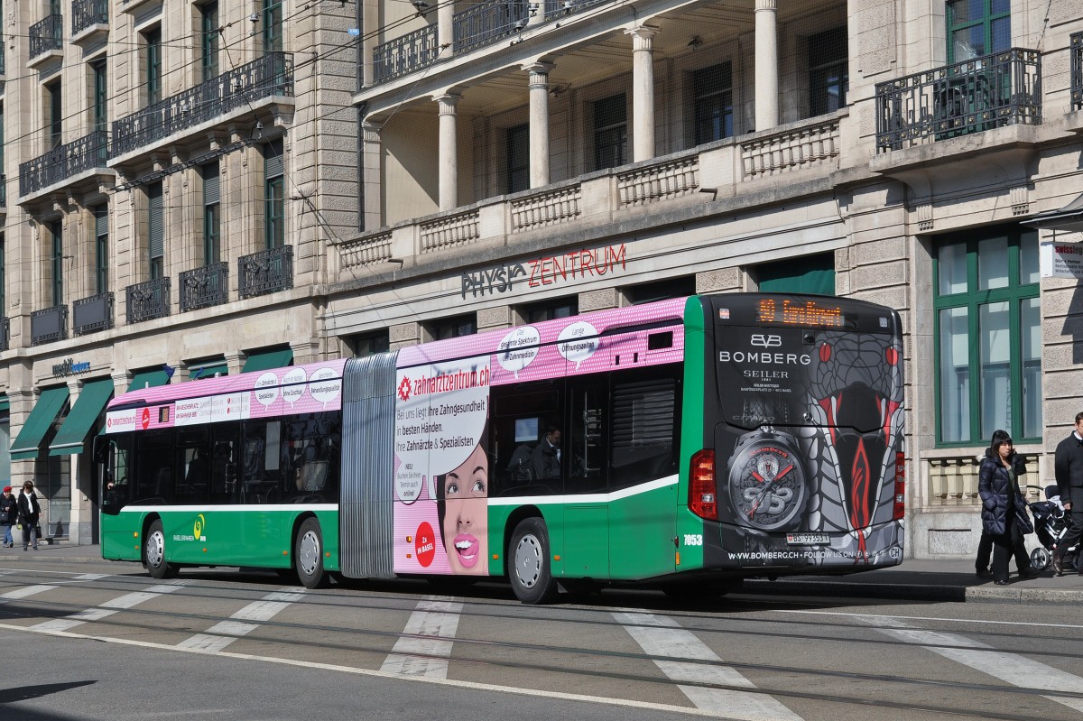Mercedes Citaro 80 der AAGL, auf der Linie 81, wartet an der Endstation am Aeschenplatz. Die Aufnahme stammt vom 11.03.2016.