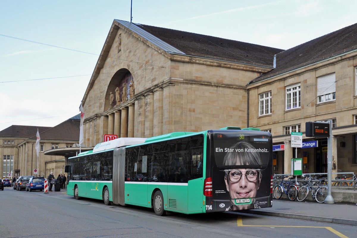 Mercedes Citaro 714 auf der Linie 30 wartet an der Endstation am Badischen Bahnhof. Die Aufnahme stammt vom 29.01.2016.