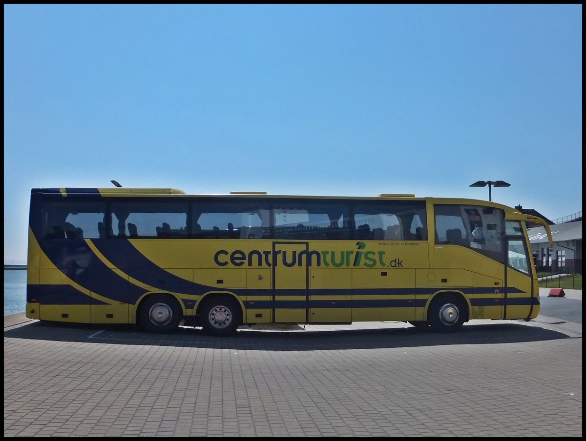 Scania Irizar von CentrumTurist aus Dänemark im Stadthafen Sassnitz am 20.05.2014