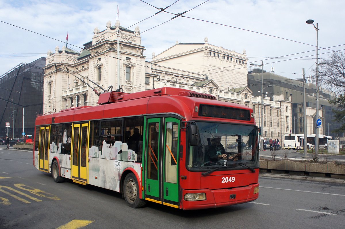 Serbien / Stadtbus Belgrad / City Bus Beograd: Oberleitungsbus BKM (Belkommunmash) AKSM-321 - Wagen 2049 der GSP Belgrad, aufgenommen im Januar 2016 am Platz der Republik (Trg Republike) in Belgrad.