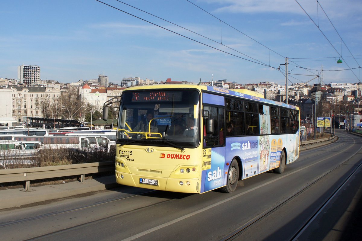 Serbien / Stadtbus Belgrad / City Bus Beograd: Güleryüz Cobra GM 290 der "Grupa privatni autoprevoznici" / "Dumeco", aufgenommen im Januar 2016 auf der Brücke über die Save in der Nähe der Haltestelle "Ekonomski fakultet" in Belgrad.