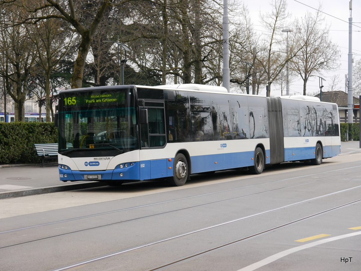 VBZ - Neoplan Nr.552 ZH 730552 unterwegs auf der Linie 161 in der Stadt Zürich am 11.03.2016