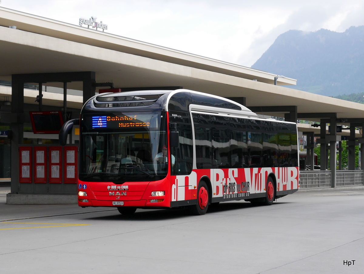 Postauto - Neoplan GR 163000 auf Dienstfahrt bei der Postautohaltestelle ob dem Bahnhof Chur am 15.05.2016