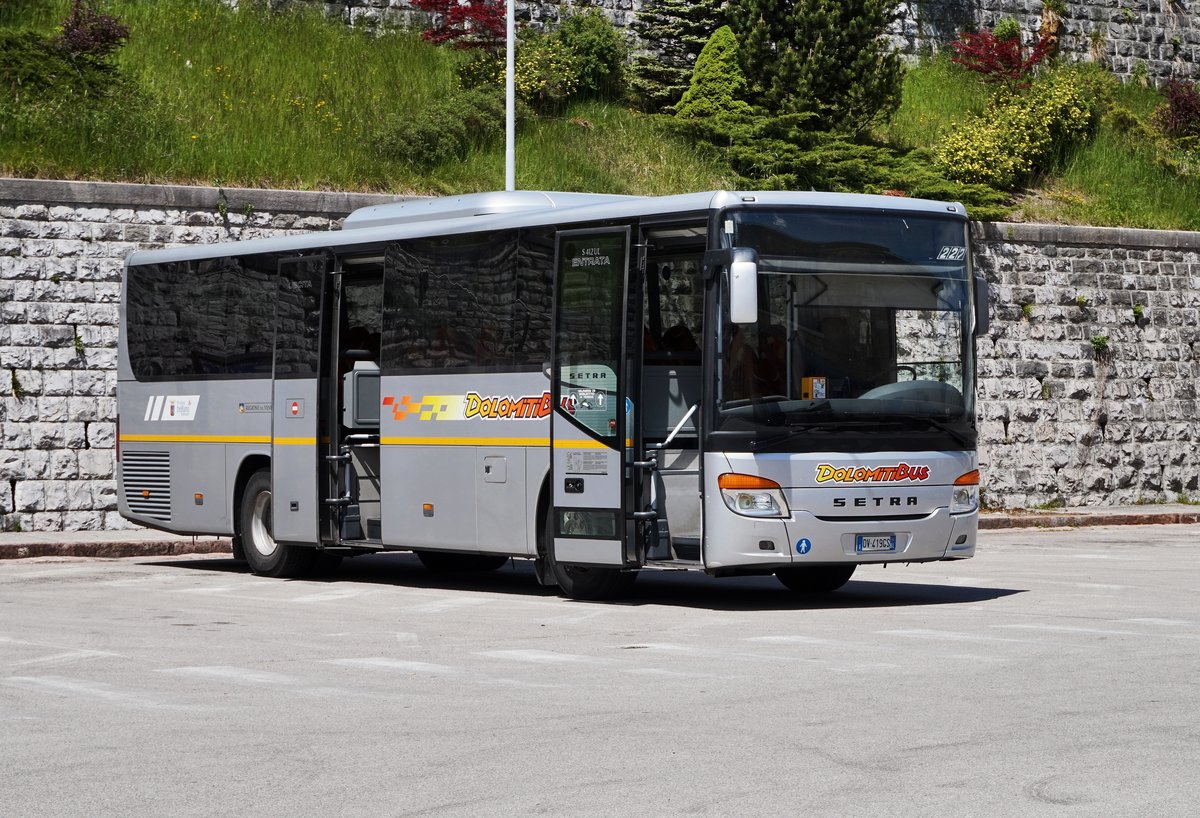 SETRA S 412 UL von DolomitiBus, am 21.5.2016 bei der Haltestelle Calalzo FS.